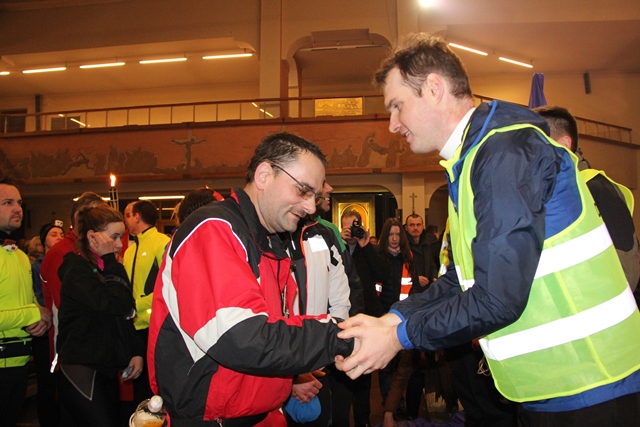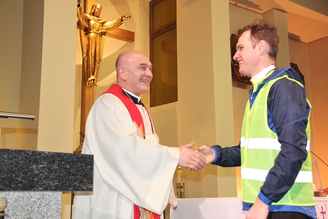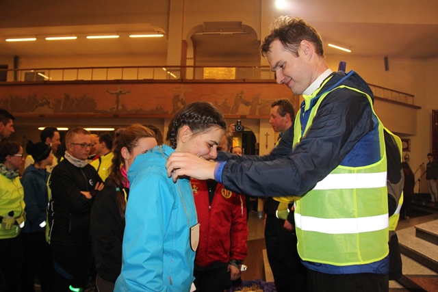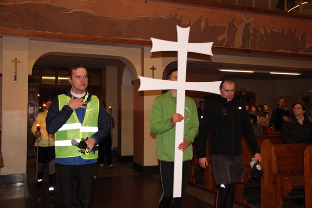 Półmaraton zakończył się w kościele św. Pawła Apostoła w Ostrowie Wielkopolskim wspólną modlitwą i rozdaniem pamiątkowych medali. Wcześniej, o godz. 21.00, w oczekiwaniu na powrót biegaczy w ostrowskiej świątyni odprawione zostało nabożeństwo drogi krzyżowej. Uczestników Biegowej Drogi Krzyżowej witał ks. kan. Jacek Kita. - Jezusa na zakończenie drogi krzyżowej ukrzyżowano, ale On się tego nie bał, bo wiedział, że to nie jest koniec. Ciebie też mogą ukrzyżować krzyżem śmiechu i szyderstwa. Jezus każdemu z nas dał szansę przemiany na tej drodze krzyżowej. Dzisiaj każdy musi sobie w sercu odpowiedzieć, czy to miało sens być z Jezusem przez te 21 kilometrów, przez te 14 stacji tu i teraz, dziś i w tej chwili - powiedział proboszcz parafii św. Pawła Apostoła w Ostrowie Wielkopolskim. Dziękował biegaczom za świadectwo wiary. - Bóg zapłać za piękne świadectwo wiary, a także otwarcie się na działanie Pana Boga w swoim życiu. Drodzy uczestnicy tego półmaratonu chciałbym Wam podziękować za tę odwagę świadectwa wiary i za podjęcie tego trudu – powiedział ks. Kita.