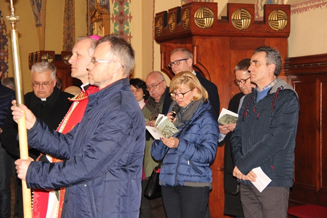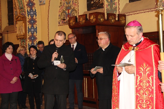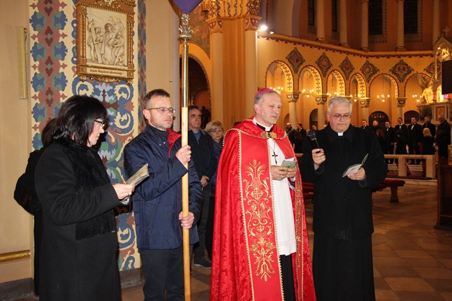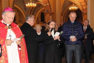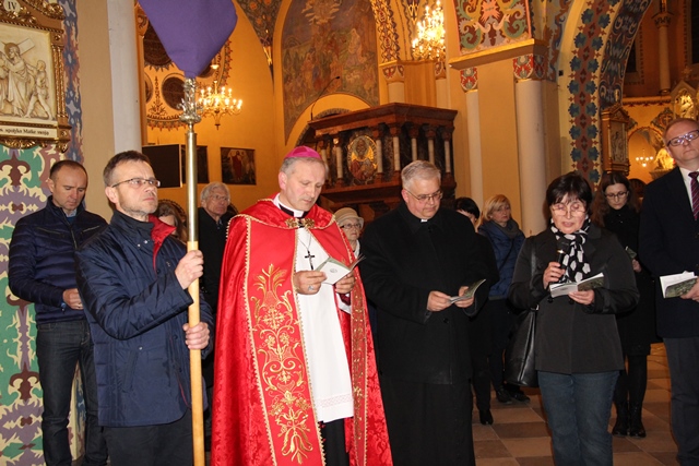 Na zakończenie drogi krzyżowej pasterskiego błogosławieństwa udzielił bp Łukasz Buzun. – Droga krzyżowa jest rekonstrukcją człowieka. To wszystko co przeżywamy w drodze krzyżowej, czego doświadczamy, co kontemplujemy jest nieodzowne, żeby człowiek z tych różnych doświadczeń, myśli i spraw, które niesie w swoim sercu i które wydarzyły się na drodze jego życia odnajdywał to co jest najważniejsze, czyli tą Bożą nić miłości i wtedy to wszystko co jest porozrywane, pełne niepokoju, co napełnia człowieka lękiem i bólem tworzy harmonijną mozaikę. Ta wędrówka drogą krzyżową niech owocuje odnalezieniem Bożej nici miłości, która tworzy wielką jedność chociaż w różnorodności – mówił diecezjalny duszpasterz środowisk twórczych.