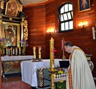 Nabożeństwo Drogi Światła wzorowane jest na nabożeństwie Drogi Krzyżowej. Podczas Drogi Krzyżowej rozważamy 14 stacji męki i śmierci Chrystusa. Droga Światła to czternaście spotkań ze zmartwychwstałym Panem. Podczas tego nabożeństwa przeżywamy zmartwychwstanie Jezusa, spotkanie z uczniami przy pustym grobie, objawienie się Jezusa Marii Magdalenie, spotkanie Jezusa z uczniami zmierzającymi do Emaus. Mikstackie sanktuarium to także takie wyjątkowe Emaus. W Niedzielę Zmartwychwstania od pokoleń mieszkańcy Mikstatu z paschałem i figurą zmartwychwstałego udają się w procesji z kościoła farnego na Cmentarne Wzgórz głosząc: Alleluja! Jezus żyje! Dziś podczas nabożeństwa Drogi Światła rozważaliśmy wiarę uczniów, którzy na swej drodze nie poznali swego Mistrza. Nabożeństwo stało się okazją do spotkania z uczniami, którzy dopiero przy łamaniu chleba poznali swego Nauczyciela. Jedno ze spotkań zmartwychwstałego Pana z uczniami przybliżyło nam scenę przekazania uczniom władzy odpuszczania grzechów. Było także okazja do tego, byśmy jak św. Tomasz umocnili swoją wiarę. Spotkaliśmy się podczas rozważań także z Piotrem, któremu Jezus przekazuje prymat. Pan podczas spotkań po zmartwychwstaniu posyła uczniom obiecanego Ducha Świętego. Posłał go nie tylko uczniom, ale także każdemu z nas, by nas umacniał, pomagał w mężnym wyznawaniu wiary. Gdy na specjalnie przygotowanym stojaku zapłonęła 14 świeca był to znak zbliżającego się końca nabożeństwa Drogi Światła. Nabożeństwo Drogi Światła sprawowane było w tym roku w mikstackim sanktuarium po raz drugi. Pierwsze przeżywaliśmy w Święto Miłosierdzia Bożego. Na zakończenie ks. kan. Krzysztof Ordziniak udzielił uczestnikom nabożeństwa Drogi Światła błogosławieństwa.