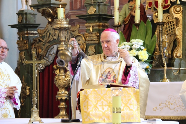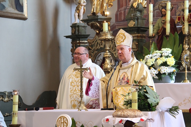 Zwracając się do jubilata ks. kan. Andrzeja Miliana wskazywał, że został posłany do ludzi, żeby przekazywać ludziom Bożą mądrość. Zachęcał wiernych, aby dziękowali Bogu za dar kapłaństwa swojego proboszcza. - Trzeba podziękować za mamę, że go ładnie wychowała, że przestrzegano w domu zasad religijnych i patriotycznych, za ludzi, którym służył jako wikariusz i proboszcz, za to wszystko trzeba Bogu dziękować – mówił ordynariusz diecezji świdnickiej.
