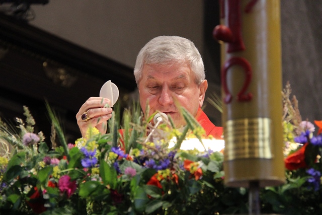 W homilii biskup kaliski Edward Janiak wskazywał na tajemnicę Zesłania Ducha Świętego. – Apostołowie dopiero po zesłaniu Ducha Świętego poczuli siłę, moc, przekonanie, by głosić Ewangelię i poszli na cały świat. To był początek Kościoła. Dzisiaj w to święto pragniemy Panu Bogu dziękować za dar wiary, za Ducha Świętego w naszych osobistych sytuacjach życia, naszych decyzjach, chwilach zwątpienia, niepewności, niestałości, wewnętrznej ciemności – powiedział celebrans.