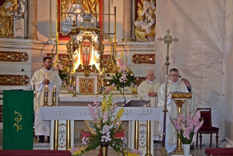 O tym, że aby dobrze przeżyć ważne uroczystości i święta trzeba się do nich przygotować mówił na początku drugiej nauki rekolekcyjnej wygłoszonej podczas Mszy Świętej sprawowanej  o godz. 18:30  w sanktuarium ks. kan. Bogumił Kempa. Wraz z nim Eucharystię sprawował kustosz miejsca, ks. kan. Krzysztof  Ordziniak. Przed Mszą św. odmówiona została Koronka do Bożego Miłosierdzia oraz odśpiewane Godzinki o św. Rochu Wyznawcy. Poruszyła zapewne serca i sumienia wielu zgromadzonych w sanktuarium nauka wygłoszona przez ks. kan. Bogumiła. Podkreślił w niej, że dobre przeżycie odpustu wymaga przede wszystkim przemiany serc. Nawiązując do czytań mszalnych skoncentrował rozważanie na grzechu obmowy. Podkreślił, że ma on długą  historię, a my ludzie mamy wyjątkowa zdolność do obmowy. Zaakcentował, że obmowa jest grzechem ciężkim i zachęcił do refleksji, czy się z tego grzechu spowiadamy. Kaznodzieja zwrócił uwagę, że wielokrotnie usprawiedliwiamy grzech obmowy, w złym celu wykorzystujemy język. Kontynuując rozważanie ks. kan. Bogumił powiedział: „ Język to jest takie urządzenie, które  dał nam Pan Bóg dla bardzo konkretnego dobra, żebyśmy mogli ze sobą rozmawiać, żebyśmy mogli się komunikować. A my wykorzystujemy go do grzechu,  a to przecież na język przyjmujemy Eucharystię”. Kaznodzieja podkreślił, że  słowa, które wypowiadamy, są często przyczyną zła dziejącego się wokół nas. Zwrócił naszą uwagę na to, że papież Franciszek mówi często o grzechu plotkowania, wskazując nam kierunek pracy nad sobą. Nawiązując do życia św. Rocha, który także został niesłusznie oskarżony, obmówiony,  niesprawiedliwie, niesłusznie osadzony w więzieniu zwrócił uwagę na cierpienie, które związane jest z grzechem obmowy. Zaakcentował, że „Grzech obmowy zawsze wiąże się z wielkim cierpieniem” . Wskazał, że obmawiając innych często nie zdajemy sobie sprawy z tego, że niszczymy  czyjeś życie. Kaznodzieja podkreślił, że wokół nas jest wiele dobra i zachęcał byśmy potrafili się ucieszyć dobrem doświadczanym przez innych ludzi. Czy jest w nas, w tym co mówimy chrześcijańska miłość, czy potrafimy patrzeć na drugiego człowieka z miłością - to pytania do postawienia, których zachęcał nas rekolekcjonista. Mamy często problem z pojednaniem, przebaczeniem, a ich brak nas niszczy. Przeywamy czas ćwiczeń duchowych, więc i ta nauka zakończona była zadaniem. Tym razem ks. kan. Bogumił zachęcał nas: „ Powiedz coś dobrego osobie, którą najbardziej kochasz”. Słowa ks. kan. Bogumiła zapewne wielu skłoniły do refleksji, zadumy, rachunku sumienia. Miejmy nadzieję, że dzięki tej nauce będziemy w  lepszy sposób korzystać z daru  języka i słowa.
