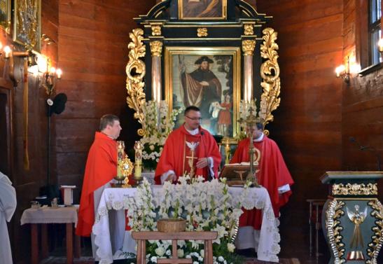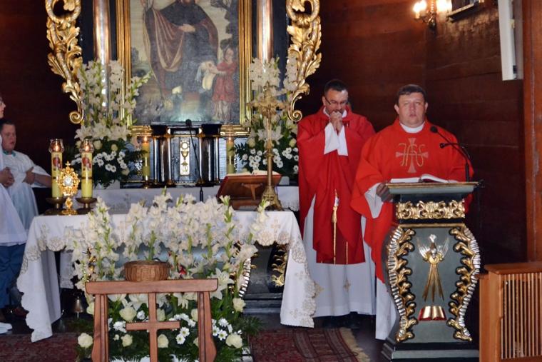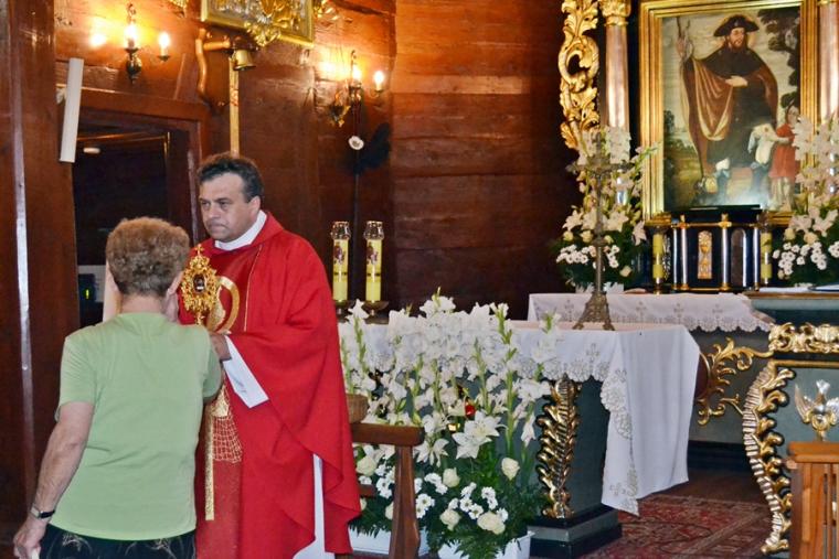 Po raz kolejny ubogacił nas słowem ks. kan. Bogumił. Padły podczas tej trzeciej nauki rekolekcyjnej słowa zmuszające i zachęcające do refleksji, ale i pracy nad sobą, przemiany naszych serc. Kaznodzieja ukazał  w nim skutki  eliminacji Boga z życia i zachęcał do trwania w wierze. Przykładem trwania przy  Jezusie może być, jak wskazał kaznodzieja, nasz patron św. Roch, ale także wspominana przez Kościół   św.Teresa Benedykta od Krzyża (Edyta Stein). Nawiązując do życie patrona sanktuarium ks. kan. powiedział: „ Święty Roch całe życie  oparł na Jezusie i niósł go tam gdzie ludzie go potrzebowali. (…) Święty Roch miał tę odwagę, by iść z darem nadziei, by pokazywać, że Chrystus jest jedynym rozwiązaniem na każdą chorobę, na każdą dżumę, na każdy grzech”. Kontynuując rozważanie ks. kan. podkreślił, że największą i najgroźniejszą dżumą naszych czasów jest grzech.Zaakcentował, że we współczesnej Europie ludzie przestają wierzyć  w Boga. Bóg przestaje być dla człowieka ważny. Zwrócił uwagę na niebezpieczeństwo postawy roszczeniowej prowadzącej do przekonania, że cały świat powinien być podporządkowany człowiekowi.  W dalszej części rozważania rekolekcjonista przybliżył postać św. Teresy Benedykty od Krzyża, akcentując jej drogę nawrócenia i męczeńskiej śmierci.  Podkreślił, że wiedziała ona doskonale do czego prowadzi eliminacja wiary w Boga. Wielkie wrażenie na zebranych zrobiło przytoczone świadectwo życia kapłana rumuńskiego, który po odprawieniu Mszy św. prymicyjnej został aresztowany, osadzony w nieludzkich warunkach w więzieniu,  był prześladowany, szykanowany, a mimo to wytrwał w wierze. Nie zwątpił w miłość Boga. Ks. kan. przytoczył kilka przykładów pokazujących do czego prowadzi eliminacja wiary i Boga z życia. Zaakcentował, że kiedy zabraknie Boga ludzie  zaczynają się niszczyć, zabijać. Nawiązując do postaci św. Rocha kaznodzieja podkreślił, że jest to Święty czasami niedoceniany. Podkreślając Jego znaczenie i wielkość powiedział: „To Święty, który budował tożsamość Europy, to Święty, który budował tożsamość was, waszych przodków, którzy tu wokół cmentarza są pochowani. Wierzę, że są też duchowo z nami, słuchają tych słów i  z nami się modlą. To właśnie ich wiara kazała postawić tę świątynię, która dziś jest sanktuarium. Powinniśmy  być im za to wdzięczni”. W dalszej części rozważania kaznodzieja podkreślił, że nie można traktować św. Rocha wyłącznie jako „Świętego od zwierząt”. Było on człowiekiem wielkim, który jak kontynuował kaznodzieja, wiedział do czego prowadzi świat bez Boga. Zaapelował, by nie wstydzić się różańca, koronki do miłosierdzia Bożego, by nie wstydzić się prostej, zwyczajnej  wiary. Powiedział:  „ Nie dajmy się zwariować, nie wstydźmy się tego naszego różańca, tych koronek, tego św. Rocha, tej pięknej tradycji, którą tu w Mikstacie pielęgnujecie. Przecież jej by nie było, gdyby nie wasza wiara. Oczywiście nie zamieniajmy tego w jakieś wydarzenie folklorystyczne, kulturowe, bo wtedy zatracimy to co najważniejsze, to czym oddychał Mikstat przez tyle wieków. Oddychał wiarą, bo św. Roch motywował, bo my tego potrzebujemy. Wiele ważnych słów padło w tym rozważaniu. Warto do nich powrócić, by uświadomić sobie niebezpieczeństwa jakie niesie eliminacja Boga z życia społeczeństw, ale także  poszczególnych osób. Ukazało nam także wielkość postaci naszego niebieskiego Patrona i zwróciło uwagę na wielość Jego charyzmatów. Zapewne wielu zgromadzonych wiernych wywiąże się z zadania poleconego przez ks. kan. Bogumiła Kempę. Jakiego? Pomodlimy się za Europę, za naszą Ojczyznę, by nie utraciła wiary  w Boga, byśmy my pozostali Mu zawsze wierni. Po Mszy św. została odprawiona nowenna do św. Rocha. Coraz więcej próśb i podziękowań pojawia się na kartkach, które odczytywane są podczas nowenny i omadlane. To zapewne znak naszej wiary  w Boga, wiary w to, że Bóg nas kocha. To także wyraz naszej wiary w orędownictwo i szczególną  opiekę nad nami.
