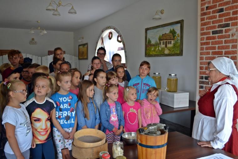 Podczas spotkań ich uczestnicy  poznawali atrybuty św. Rocha, ich znaczenie i związek z jego życiem. Jednym z celów Szkoły Świętego Rocha jest zapoznanie młodego pokolenia Mikstaczan z genezą odbywającego się tu z  okazji uroczystości odpustowych obrzędem błogosławieństwa zwierząt. Co warto podkreślić odbywa się on w tej społeczności nieprzerwanie od ponad trzystu lat. W poniedziałkowe  przedpołudnie odbyło się ostatnie w tym roku spotkanie w Szkole Świętego Rocha. Rozpoczęło się jak zwykle modlitwą w sanktuarium i uczczeniem relikwii. Następnie ks. kustosz opowiedział uczestnikom spotkań o Izydorze Oraczu. Jego obraz znajduje się w sanktuarium. Rozmowa o Izydorze Oraczu stała się okazją do rozmowy o trudzie prac rolnika, a także o szacunku dla chleba. Następnie uczestnicy spotkania udali się do gospodarstwa agroturystycznego, gdzie między innymi w sposób tradycyjny wypieka się chleb i wyrabia masło. Tu dzieci miały okazję przygotować do wypieku bułkę. Wizyta w gospodarstwie agroturystycznym była okazją do obejrzenia różnych maszyn rolniczych.  Nie zabrakło oczywiście czasu na zabawę na świeżym powietrzu. Zakończyła się VI już edycja Szkoły Świętego Rocha. Mamy nadzieję, że pomogła ona  w  duchowym  przygotowaniu się młodym parafianom mikstackim do uroczystości odpustowych.  To szkoła,która uczyła szacunku dla drugiego człowieka, przekazywała wartości, które ważne były  w życiu św. Rocha.  Pozwoliła im bliżej  poznać postać świętego Patrona. Uczestnicy spotkań otrzymali pamiątkowe dyplomy.
