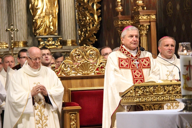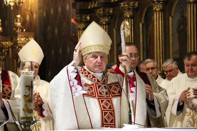 Przytoczył fragment homilii wygłoszonej pięć lat temu w katedrze kaliskiej, w której biskup określił swoje główne zadania, czyli „prowadzić do wiary wszystkich, którzy zostali poddani mojej duszpasterskiej służbie, zachęcić do poznawania prawdy, która rozbłysła w słowie Objawienia Bożego, a pełnię światła znajduje w Jezusie Chrystusie”.