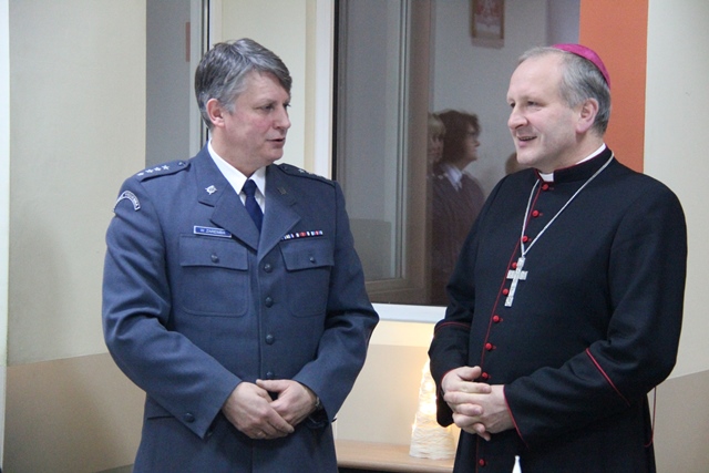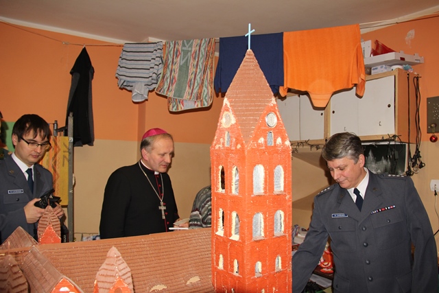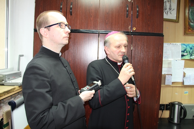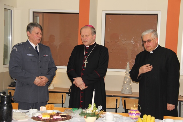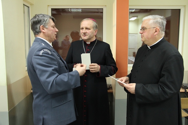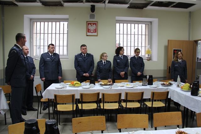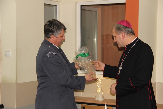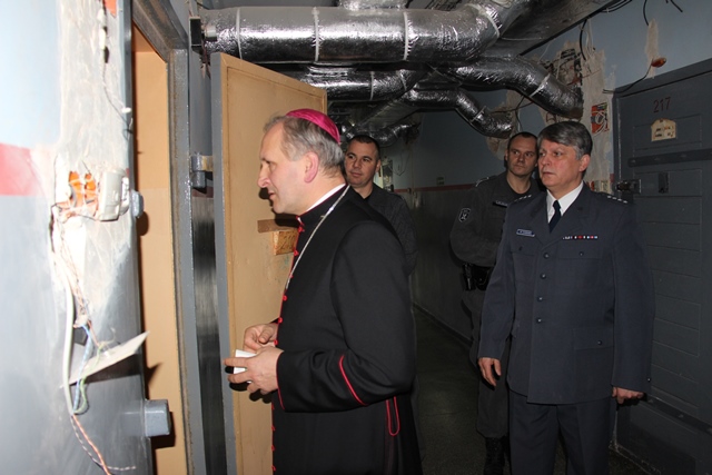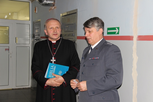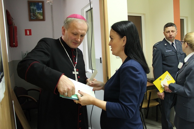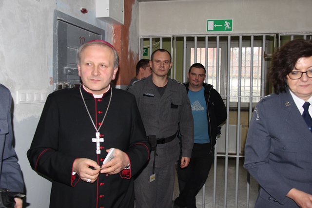 Wizytę w areszcie śledczym rozpoczęło spotkanie z pracownikami. Gości powitał dyrektor kpt. Waldemar Zaremba. Po odczytaniu Ewangelii o Bożym Narodzeniu przez kapelana więziennego ks. Pawła Wczesnego słowo do pracowników aresztu skierował bp Łukasz Buzun. – Państwa zawód nie należy do łatwych. Jeśli wybieramy taką drogę życiową to Pan Bóg daje łaskę i wspiera, abyśmy wykonywali swoje posłannictwo jak najlepiej. Życzę, aby te święta Bożego Narodzenia były świętami rodzinnymi, niosły ze sobą ciepło i światło. Życzę radości w sercu i siły do wykonywania tej posługi – mówił biskup.