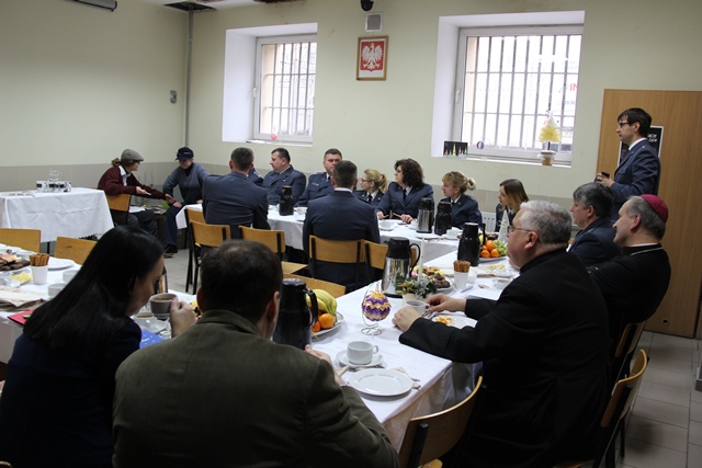 Biskup i kapłani przełamali się opłatkiem z funkcjonariuszami, przedstawicielkami Bractwa Więziennego i ponad 230 aresztantami.