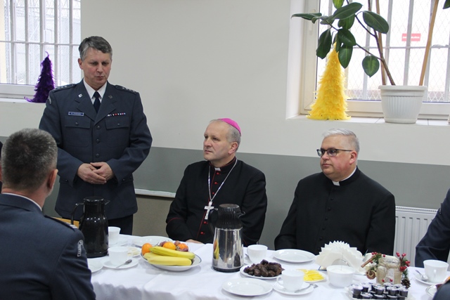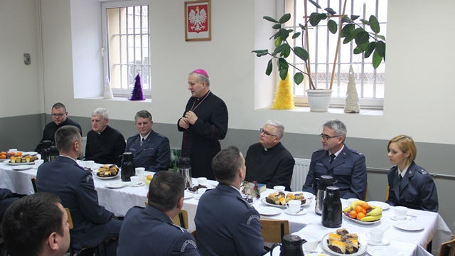 Biskup i kapłani przełamali się opłatkiem z funkcjonariuszami, siostrami zakonnymi i aresztantami.