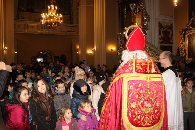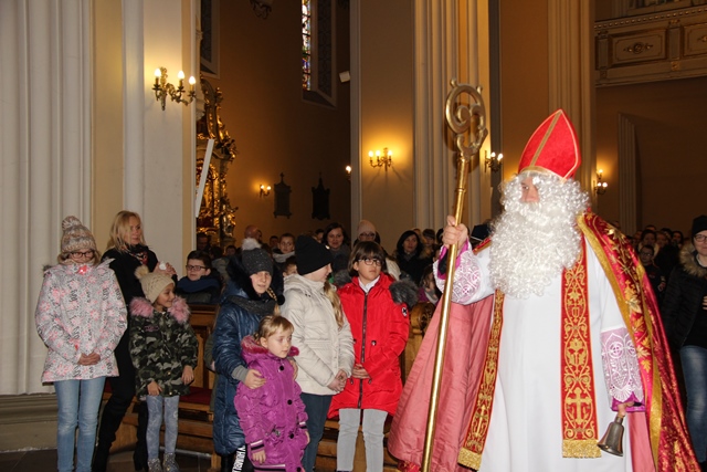 Po Mszy św. do katedry przybył św. Mikołaj, który obdarował wszystkie dzieci paczkami ze słodyczami.