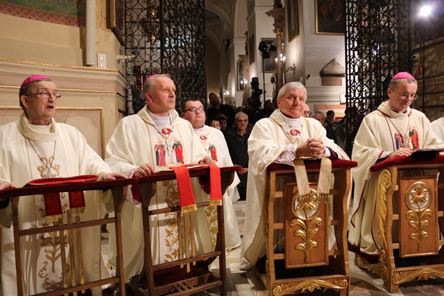 Biskupów, kapłanów i wiernych powitał ks. prał. Jacek Plota, kustosz Narodowego Sanktuarium św. Józefa w Kaliszu, a modlitwę wstawienniczą w intencji rodzin i obrony życia człowieka przed obrazem św. Józefa Kaliskiego prowadził ks. Piotr Machała.