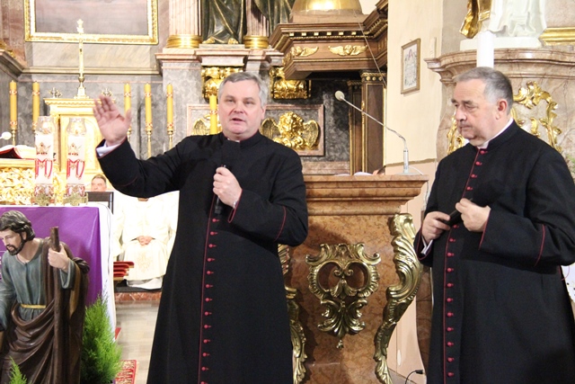 Wcześniej konferencję na temat dobrego wykorzystania czasu łaski, czyli Nadzwyczajnego Roku Świętego Józefa Kaliskiego wygłosili: ks. prał. dr Andrzej Latoń, wikariusz generalny diecezji kaliskiej i prezes Polskiego Studium Józefologicznego, proboszcz parafii św. Gotarda w Kaliszu oraz ks. prał. dr Jacek Plota, kustosz Narodowego Sanktuarium św. Józefa w Kaliszu. Duchowni wskazywali, że św. Józef jest potężnym patronem na ostateczne czasy. Przypomnieli historię kultu obrazu św. Józefa Kaliskiego oraz najważniejsze wydarzenia związane z patronem. Wśród nich wymienili coroczne pielgrzymki kapłanów z Dachau, którzy dziękowali św. Józefowi za ocalenie oraz wizytę papieża Jana Pawła II w Kaliszu i wygłoszoną pamiętną homilię, w której zawierzył wszystkie rodziny i życie nienarodzonych św. Józefowi. Zachęcali wiernych, aby w Nadzwyczajnym Roku Świętego Józefa przybywali do Narodowego Sanktuarium św. Józefa w Kaliszu i wypraszali za jego wstawiennictwem łaski dla ojczyzny, kapłanów i rodzin. Rozmowę z gośćmi prowadził ks. prał. Leszek Szkopek.
