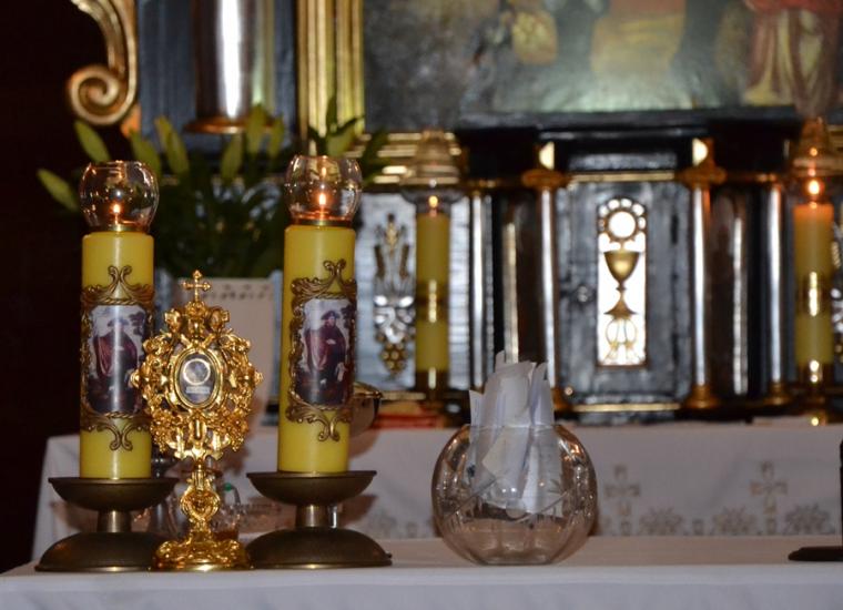Na godzinę 18:00 do sanktuarium przyszli przed wszystkim dorośli. Było nas w ten sobotni wieczór znacznie więcej. Tym razem Eucharystię poprzedziła modlitwa nowennową, którą poprowadził ks. kustosz Krzysztof Ordziniak. Następnie ks. Sebastian Łagódka, nasz rekolekcjonista, sprawował mszę święta, natomiast ks. kan. Krzysztof posługiwał wiernym w konfesjonale. Rozpoczynając czwartą konferencję ksiądz rekolekcjonista zaznaczył, że czynimy kolejny krok w drodze bycia uczniami Chrystusa po której nas prowadzi święty Roch. Ks. Sebastian przywołał słowa z modlitwy nowennowej mówiące o tym, że jest on z Bożej opatrzności lekarzem duszy i ciała. Prosiliśmy w tej modlitwie Boga, by zachował nas nie tylko od choroby ciała, ale i duszy. Kaznodzieja dodał, że chorobą duszy jest grzech. Zaznaczył, że jeśli Pan Jezus uzdrawiał to najpierw uzdrawiał duszę. Kontynuując kapłan podkreślił, że dawniej choroba postrzegana była jako konsekwencja grzechu. Ksiądz rekolekcjonista powiedział: „Największą chorobą, która nas toczy jest grzech. Choć czasem to bagatelizujemy wydaje nam się nam te choroby naszego ciała są trudniejsze. Choroby naszego ciała dotykają tylko ciała, dotykają tylko naszego życia tylko tu na ziemi. Grzech, który uderza w naszą duszę, uderza w nasze życie wieczne". Kapłan zwrócił uwagę zebranych w sanktuarium, że warto, że trzeba przypominać sobie, czym jest grzech. Następnie przywołał słowa papieża Franciszka mówiące o tym, że grzech nie jest plamą,ale zranieniem. Celebrans podkreślił, że z niewielką raną możemy sobie poradzić sami, poważna rana wymaga pomocy, interwencji lekarza. Przywołał słowa Chrystusa „ Nie potrzebują lekarza zdrowi, ale ci, którzy się źle mają”. Ksiądz Sebastian zwrócił uwagę słuchaczy, że traktowanie grzechu jako plamy rodzi niebezpieczeństwo traktowania spowiedzi jak pralni. Zaakcentował, że Jezus porównuje się do lekarza. Kontynuując kapłan powiedział: „Jezus chce, żebyśmy pamiętali, że grzech nas rani, żebyśmy to zrozumieli. Czasami ludzie wierzący wpadają w taką pułapkę i mówią tak: jak nie czuję grzechu, to chyba go nie mam, a jak go czuje to jest”. Kaznodzieja zachęcała do postawienia sobie pytania, które choroby są groźniejsze, czy te które odczuwamy, czy te które nie dają objawów, a niszczą człowieka. Podkreślił, że analogicznie nie musimy grzechu czuć, ale potrzebujemy lekarza, który nam powie, pokaże nam, że grzech nas niszczy. Ksiądz rekolekcjonista podkreślił, że Jezus wskazywał ludziom co jest dobre co jest złe, ale nie wszyscy tego słuchali i słuchają, bo człowiek będąc istotą wolną może Boga przyjąć bądź odrzucić. W dalszej części konferencji zwrócił uwagę na niebezpieczeństwo sytuacji, w której człowiek wie, że coś jest złe, ale nie uznaje tego za grzech. „ Bóg jest wspaniałym lekarzem. Jest tym, który przenika nasze serce, nasze sumienie, ale nie może nam pomóc jeśli my nie poprosimy go o tę pomoc, jeśli my nie otworzymy sami przed nim serca” dodał kapłan. Zwrócił uwagę, że Bóg jest zawsze gotowy, by uleczyć nasze zranione serca, ale jest lekarzem bezradnym wobec tych, którzy ukrywają przed nim swoje zranienia i nie potrafią się do nich przyznać. Ksiądz rekolekcjonista zaakcentował, że podstawowym skutkiem grzechu jest lęk przed Bogiem. Podzielił się swoim doświadczeniem lęku przed spowiedzią i refleksją skąd on się bierze. Wskazał, że źródłem tego lęku jest właśnie grzech. Przypomniał zachowanie Adama w raju po grzechu. Grzech niszczy nasze zaufanie do Pana Boga, a pojawia się w nas lęk. „ Dlatego Jezus przyszedł nas odkupić i zbawić, ale On też przyszedł odnowić w nas oblicze Boże. Pan Jezus robi wszystko, aby w nas ten lęk przełamać” kontynuował kaznodzieja. Zwrócił uwagę, że w Piśmie Świętym 365 razy pojawiają się słowa „ nie bój się”. Te słowa „nie bój się” dane nam są na każdy dzień. Przywołując napis na obrazie Jezusa Miłosiernego Jezu ufam Tobie podkreślił znaczenie przełamania lęku. Ksiądz rekolekcjonista podkreślał, że gdy przystępujemy do sakramentu pokuty, który jest sakramentem uzdrowienia Pan Jezus zaczyna nas leczyć poprzez swoją łaskę. W dalszej części konferencji wierni usłyszeli słowa mówiące o znaczeniu obecności sakramentu pokuty w życiu człowieka. Celebrans podzielił się z zebranymi w sanktuarium myślą, którą jak sam zaznaczył, otrzymał zapewne pod wpływem natchnienia Bożego „ Drogę do konfesjonału trzeba wykuć na pamięć, żeby umieć tam trafić po ciemku, na czworakach”. Zaznaczył, że św. Roch miał dar uzdrawiania z choroby ciała, ale i dar kojenia dusz ludzkich, naśladował w swoim życiu Jezusa. Kończąc ks. Sebastian powiedział: „Prośmy dziś świętego Rocha, aby wstawiał się za nami, byśmy przełamywali nasze lęki, nasze obawy i korzystali z sakramentu miłosierdzia, sakramentu pokuty jak najczęściej i doświadczali tej cudownej łaski uzdrowienia jaką daje Chrystus”. Kolejne ważne słowa padły podczas wygłoszonej przez księdza Sebastiana. Z pewnością staną się one dla wielu impulsem do refleksji i zmiany nastawienia do sakramentu pokuty, sakramentu, w którym z ufnością, szczerością i jeszcze większym zaufaniem powierzać będziemy Jezusowi nasze zranienia, by On tak naprawdę stał się lekarzem naszych poranionych przez grzech serc. Dziękujemy! Bardzo potrzebne były nam te słowa w tym przedodpustowym czasie…