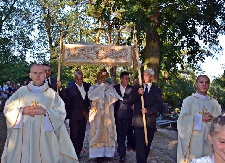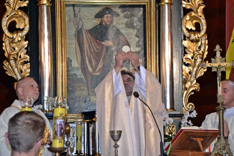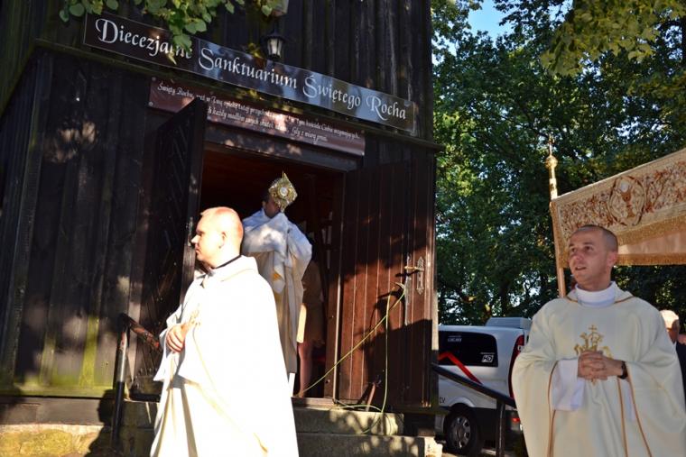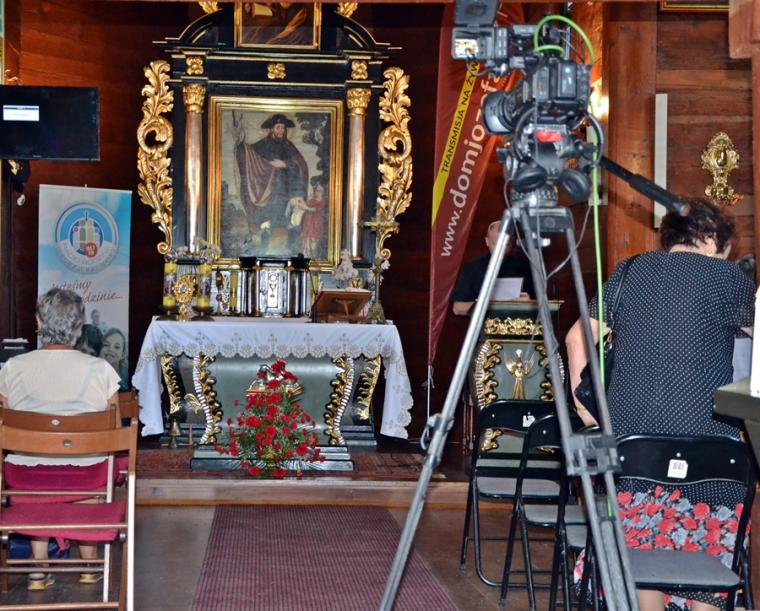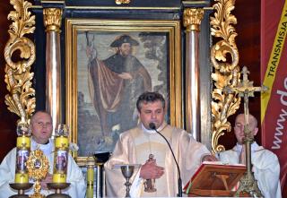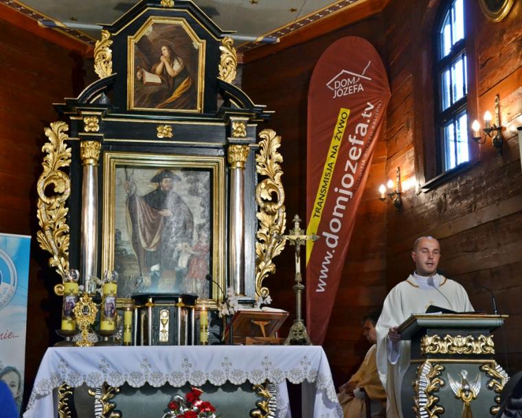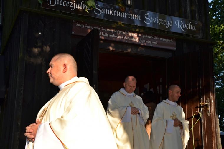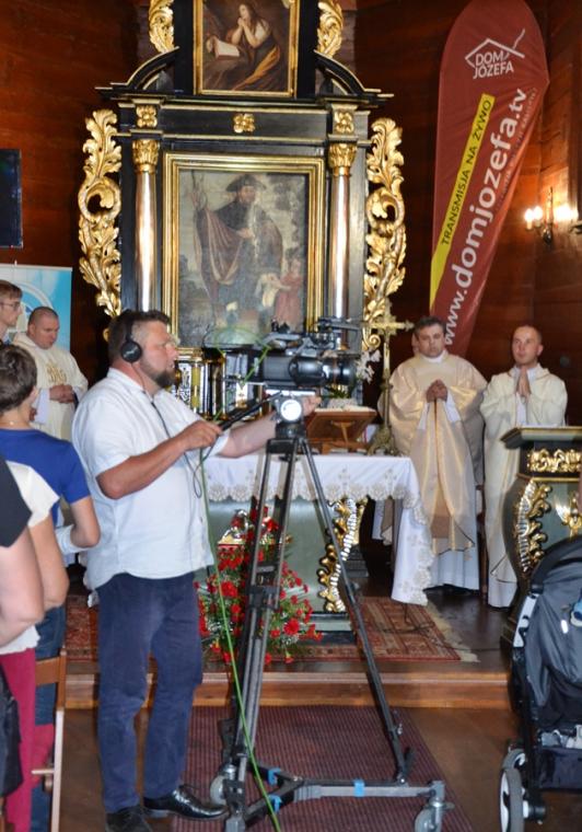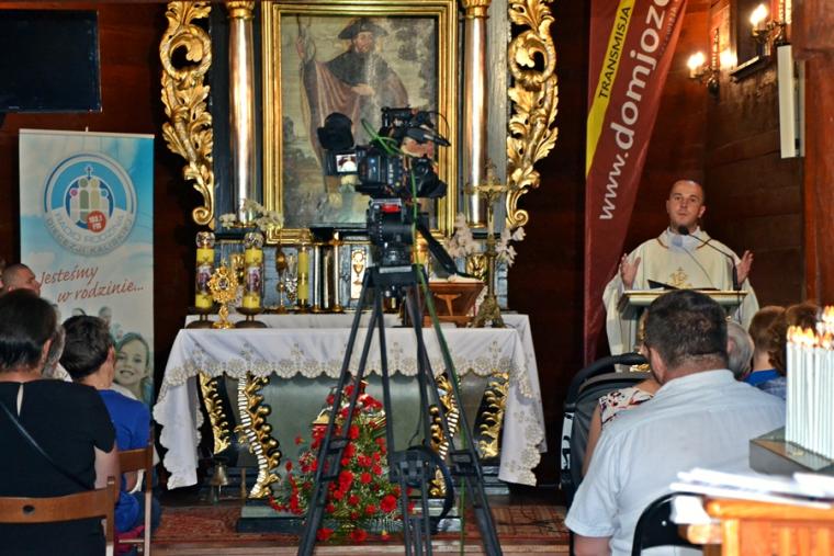 Przed zakończeniem Eucharystii Ksiądz Mateusz, Dyrektor Diecezjalnego Radia Rodzina i Telewizji Internetowej Dom Józefa zachęcał uczestników modlitewnego spotkania zarówno tych zgromadzonych w sanktuarium i wokół niego, jak i łączących się z nami duchowo dzięki transmisji do korzystania z dostępnych mediów. Wielu z nas jest wiernymi słuchaczami audycji Radia Rodzina i widzami programów TV Dom Józefa, ale mamy nadzieją, że radiowo- telewizyjna transmisja przyczyni się do powiększenia grona słuchaczy i widzów. Naprawdę warto, bo propozycji audycji radiowych i telewizyjnych jest wiele i są bardzo różnorodne. Każdy może w nich znaleźć coś dla siebie. Ponadto ks. Mateusz przybliżył słuchaczom i widzom postać św. Rocha i specyfikę mikstackiego sanktuarium. Zwrócił uwagę, że dzięki transmisjom różnych uroczystości mamy okazję poznawać piękne kościoły i sanktuaria znajdujące się na terenie naszej diecezji.