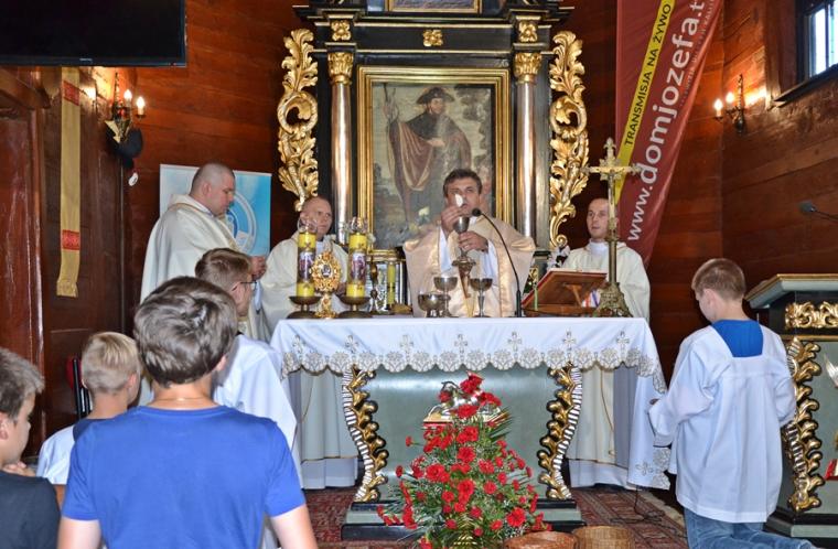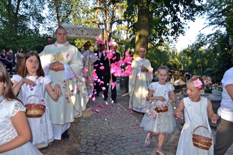 Jest tradycją w mikstackiej wspólnocie parafialnej, że w poniedziałki w Diecezjalnym Sanktuarium Świętego Rocha sprawowana jest msza święta, a po niej nabożeństwo do św. Rocha. Uczestniczy w nim wielu parafian. W poniedziałek, 24 czerwca było ich znacznie więcej. Nie wszyscy uczestniczyli w nim bezpośrednio, ale wielu włączyło się w nie duchowo, gdyż w tym dniu w ramach czwartych poniedziałków miesiąca przeprowadzona została na żywo transmisja radiowo- telewizyjna przez Radio Rodzina i TV Internetową Dom Józefa. Gościliśmy w tym dniu w sanktuarium Dyrektora Diecezjalnego Radia Rodzina i TV Internetowej Dom Józefa ks. Mateusza Puchałę, pochodzącego z naszej parafii. Wraz z ks. Mateuszem przybył ks. Szymon Rybak, który był w naszym sanktuarium po raz pierwszy i pewnie nie ostatni, bo tak jak wielu je nawiedzających i on nie oparł się jego urokowi. Mszy świętej przewodniczył kustosz miejsca ks. kan. Krzysztof Ordziniak, który polecał pracowników naszych mediów, prosił dla nich o światło Ducha Świętego. Wraz z ks. kustoszem przy ołtarzu stanęli ks. Mateusz, ks. Szymon i ks. wikariusz Marcin Walczak, którzy polecali Bożemu miłosierdzi zmarłych z naszej parafii.