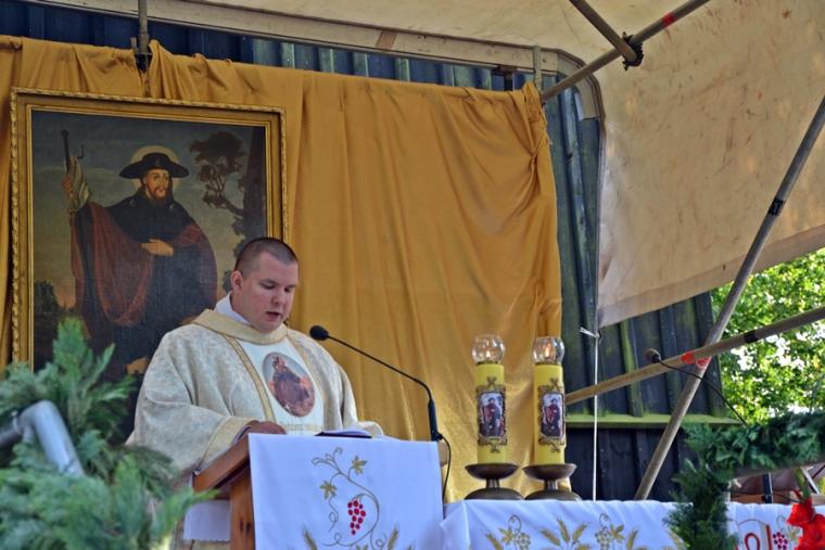W słowie skierowanym do wiernych ks. wikariusz wskazał, że usłyszane w Ewangelii błogosławieństwa są nowymi przykazaniami przyniesionymi przez Chrystusa. Ludziom kojarzą się przykazania z ograniczeniami. Biblia widzi je jako środki i drogowskazy prowadzące do szczęścia. Kontynuując celebrans pytał ilu z nas żyje naprawdę tymi błogosławieństwami. Zaakcentował, że błogosławieństwa są zadaniem, które maja być pomocne w zmierzaniu do życia wiecznego. Po Mszy Świętej ks. wikariusz odmówił modlitwę błogosławieństwa dzieci. Następnie ks. proboszcz Krzysztof Ordziniak i ks. wikariusz udzielali dzieciom indywidualnego błogosławieństwa. Na pamiątkę tego modlitewnego spotkania dzieci otrzymały obrazki ze św. Rochem. Nie zabrakło oczywiście słodyczy. Warto dodać, że licznie rzesza rodziców przybyła ze swoimi dziećmi na Mikstackie Wzgórze, by przez wstawiennictwo świętego Rocha prosić Boga o wszelkie potrzebne dla nich łaski. Słowa zachęty do rodziców, by często sami błogosławili swoje dzieci usłyszeliśmy także od ks. bpa Wiesława Szlachetki w homilii wygłoszonej podczas sumy odpustowej Po Mszy św. procesja z Najświętszym Sakramentem i relikwiami św. Rocha wyruszyła do fary. Zakończyły się uroczystości odpustowe, ale przecież Pan Jezus i Święty Roch są nadal z nami. Drzwi Diecezjalnego Sanktuarium Świętego Rocha są codziennie otwarte, bo Ten który pochylał się nad każdym potrzebującym człowiekiem zaprasza i czeka, byśmy dzielili z nim nasze radości i troski. Wszak jest Patronem codziennych trudnych spraw.