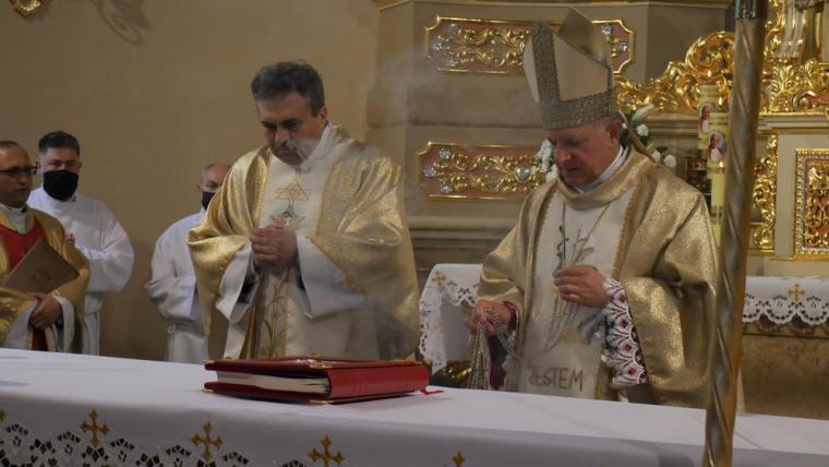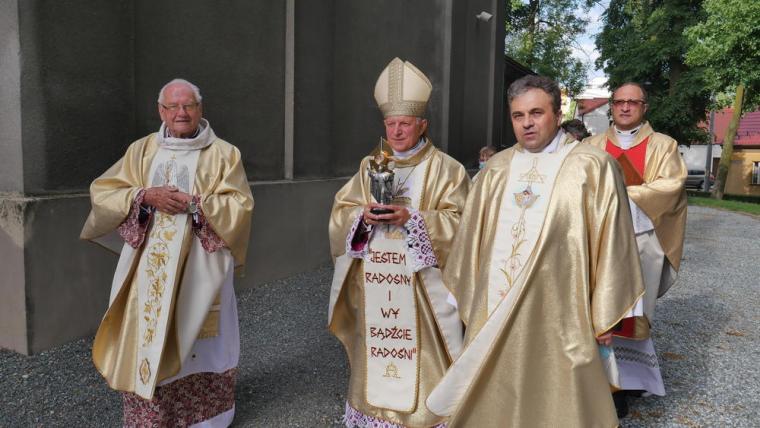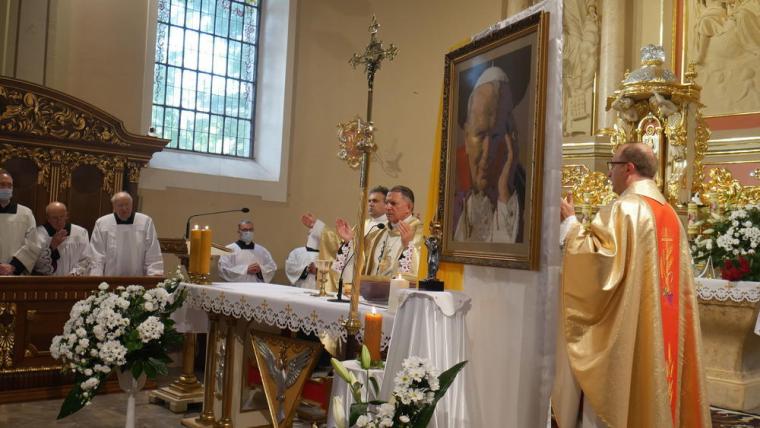 13 czerwca odbyła się w Mikstacie uroczystość przekazania przez Abpa Mieczysława Mokrzyckiego, wieloletniego osobistego sekretarza dwóch papieży, relikwii św. Jana Pawła II. Przekazując relikwie ks. proboszczowi Krzysztofowi Ordziniakowi ks. Abp powiedział: „Księże proboszczu, przyjmij tę relikwię i otaczaj ją należytą czcią i przekazuj do czczenia wiernym. Niech wszyscy modlący się przed tymi relikwiami za wstawiennictwem św. Jana Pawła II otrzymują obfitość łask i niech Go naśladują w wierze i miłości”. Następnie słowa powitania zostały wypowiedziane przez przedstawicieli parafian. Ks. proboszcz przypomniał inicjatywy podjęte w parafii, które doprowadziły do tej radosnej chwili przekazania relikwii. Podkreślił, że w znaku relikwii chcemy uczcić i powitać św. Jana Pawła II jako opiekuna i orędownika, ale także pogłębić więź modlitewną, przekazać dziedzictwo, które nam pozostawił kolejnym pokoleniom. Zwracając się do Ks. Abp Mieczysława Mokrzyckiego ks. proboszcz zaakcentował, że przybywa z dalekiego Lwowa, aby przekazać nam relikwie św. Jana Pawła II oraz wzmocnić naszą wiarę świadectwem swego życia. Następnie ks. kan. Krzysztof skierował słowa powitania do wszystkich uczestników uroczystości, dziękując tym, którzy przyczynili się do tego, że mogła się ona odbyć. Ks. proboszcz poprosił Hierarchę o przewodniczenie Eucharystii i sprawowanie jej w intencji wszystkich parafian.