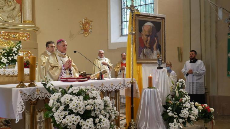 Na zakończenie Eucharystii ks. Abp pobłogosławił zebranych relikwiarzem. Była też możliwość uczczenia św. Jana Pawła II w znaku relikwii. Piękna duchowo była niedziela 13 czerwca w mikstackiej parafii. Obecność św. Jana Pawła II wśród nas w znaku relikwii jest zachętą do pochylenia się i pogłębionej refleksji nad pozostawionym nam przez Niego nauczaniem.