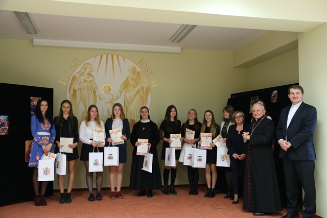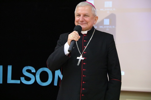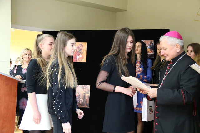 Biskup kaliski gratulował laureatom konkursu i uczniom zaangażowanym w spektakl. Złożył także życzenia z okazji zbliżających się świąt Zmartwychwstania Pańskiego. – Gdyby nie było zmartwychwstania próżna byłaby nasza wiara. Wszyscy wierzymy, że kiedyś spotkamy się w niebie, ale trzeba być dobrym człowiekiem, żeby na to niebo zapracować – mówił bp Janiak, który wyraził nadzieję, że uczniowie w przyszłości będą wizytówką tej szkoły.