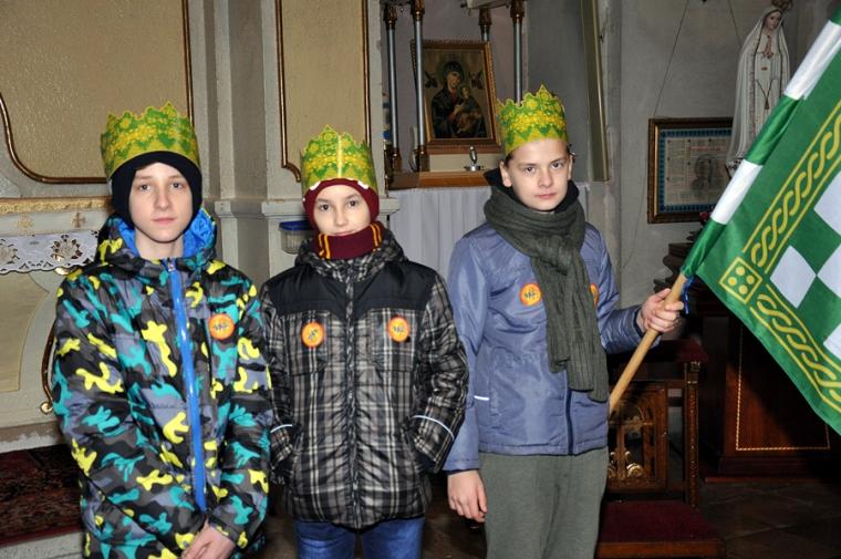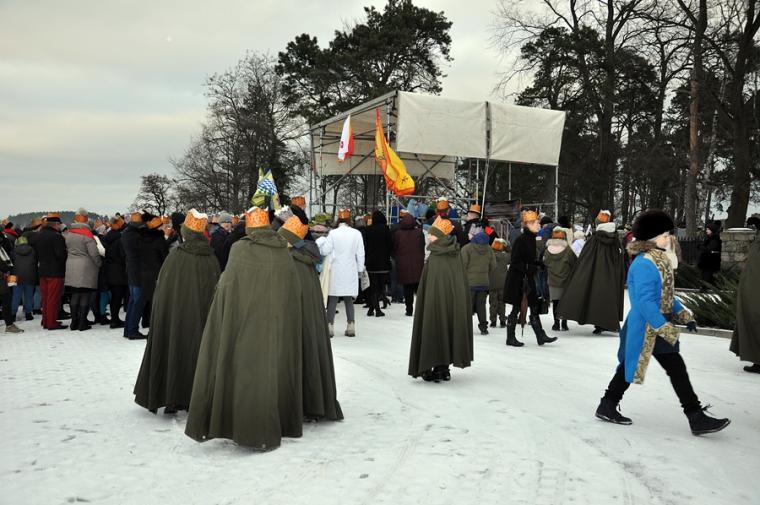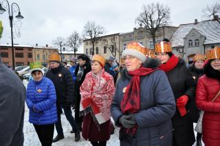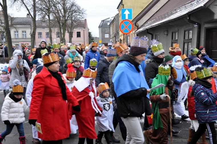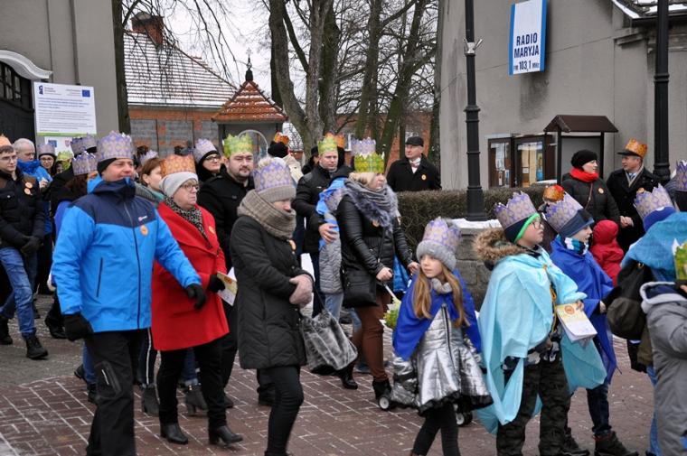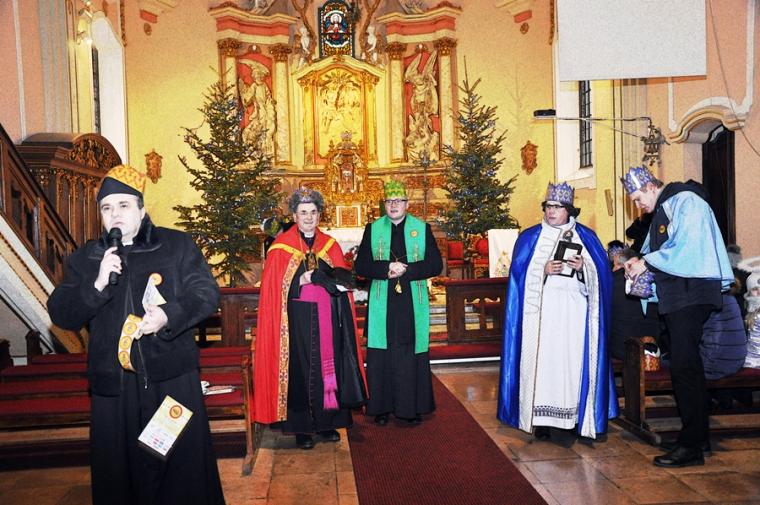 Około godz. 14:00 w kościele pw. Świętej Trójcy zaczęli zbierać się uczestnicy Królewskiego Orszaku. Tu odbyła się jego pierwsza część, którą poprowadził ks. Szymon Grzeszkiewicz, proboszcz parafii pw. Zwiastowania Pańskiego. Rozpoczynając ks. Szymon podkreślił, że spotykamy się po raz pierwszy, wspólnie, dekanalnie, by obchodzić obchodach Święta Objawienia Pańskiego, by wziąć udział w Orszaku Królewskim. Zaakcentował, że uczestnicy Orszaku podobnie jak Mędrcy ze Wschodu udają się, by oddać pokłon Jezusowi, ale także dać świadectwo swojej wiary. Następnie ks. Szymon skierował słowa powitania do wszystkich tych, którzy przybyli wraz ze swoimi parafiami. W postacie królów wcielili się księża proboszczowie. Kapłan podkreślił, że Orszak Trzech Króli, nie ma długiej tradycji, ale coraz więcej miejscowości włącza się w tę radosną formę świętowania i wspólnego kolędowania.