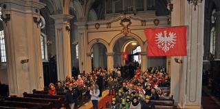 Następnie ks. kan. Krzysztof Ordziniak i ks. Szymon udzielili wszystkim uczestnikom Orszaku błogosławieństwa, po który na parkingu wybrzmiały słowa kolędy: „ Podnieś rękę Boże Dziecię, Błogosław Ojczyznę miłą…”.