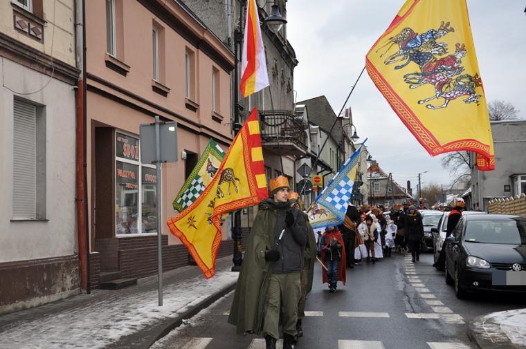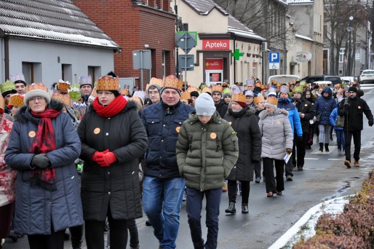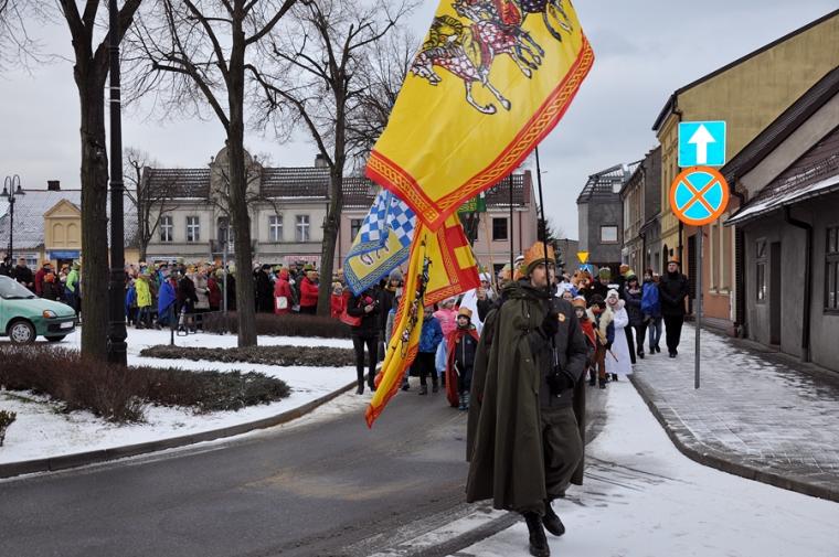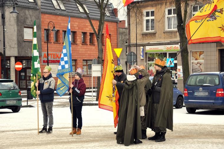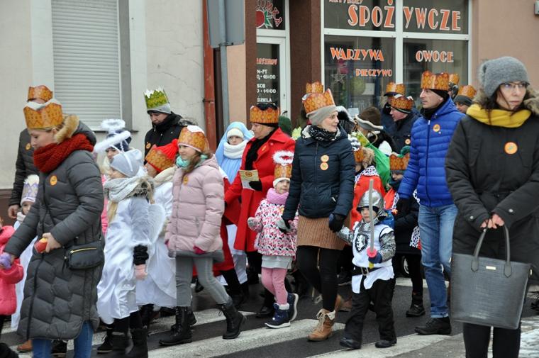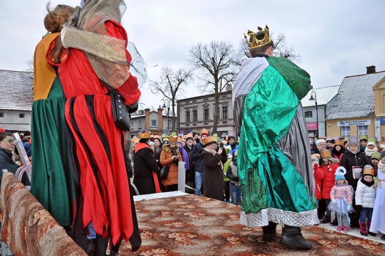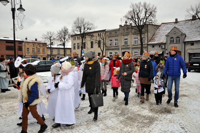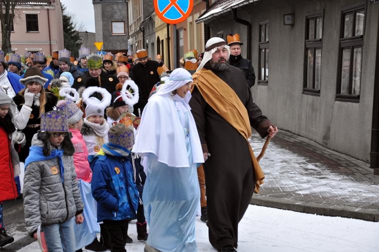 Po prezentacji Trzech Królów zebrani w mikstackim kościele obejrzeli scenę wyjścia brzemiennej Maryi Józefa, odmówiona została modlitwa Anioł Pański, a następnie Orszak wyruszył na ulice miasta. Na przedzie szli harcerze z orszakowym sztandarem i chorągwiami poszczególnych królestw, następnie anioły, Trzej Królowie, brzemienna Maryja z Józefem i pozostali uczestnicy Orszaku. Śpiewając kolędy, w atmosferze radości, wszyscy przeszli na mikstacki Rynek pod figurę Najświętszego Serca Jezusowego. Tu mieli okazję zobaczyć dwie scenki przygotowane przez uczniów szkoły podstawowej w Mikstacie. Pierwsza ukazywała dwór Heroda, w którym panuje przepych, pycha, zazdrość, w którym odmiana oblicza utożsamiana jest ze zmianami wyłącznie zewnętrznymi. Zmiany, na których koncentrują się mieszkańcy dworu Heroda nie dotyczą odmiany wewnętrznej, nie odnoszą się do przemiany serca człowieka. W drugiej scence uczestnicy orszaku mogli zobaczyć gospodę, której drzwi były zamknięte dla Chrystusa, ale która proponowała człowiekowi wiele pokus, sprawiających, że żyje on w nieładzie moralnym.
