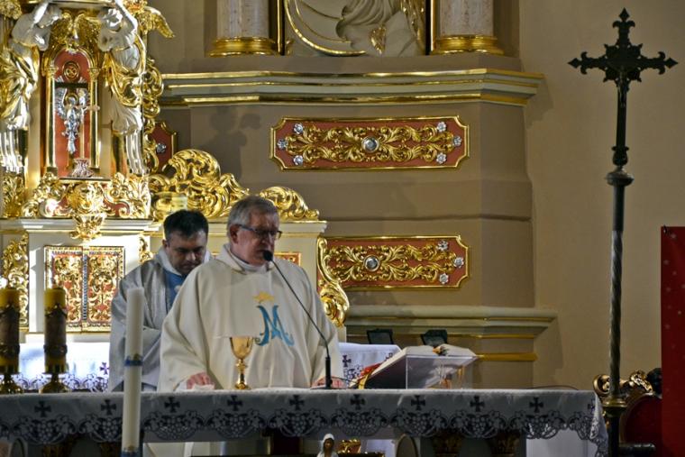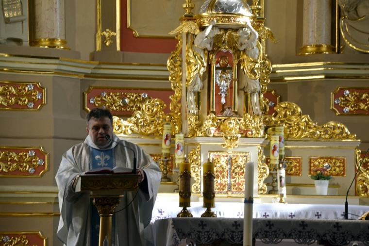 W słowie skierowanym do zebranych w świątyni, nawiązując do słów Ewangelii,  ks. kan. Krzysztof podkreślił, że byliśmy świadkami dialogu, który odmienił dzieje ludzkości. Zaznaczył, że Maryja odpowiadając  miłością na miłość Boga, staje się Matką Syna Bożego. Zaakcentował, że kumulacją  i szczytem miłości Boga do człowieka jest Niepokalana, która nigdy Go nie zdradziła nawet przez najmniejszy grzech. Kontynuując pyta, czy w  związku z tym, że popełniamy grzechy mamy popadać w kompleksy, że nie dorównujemy Maryi? Nie, gdyż na chrzcie świętym staliśmy się ukochanymi  dziećmi Bożymi, dlatego Bóg  nigdy nie przestanie nas kochać. Kaznodzieja podkreślił, że ta miłość łączy się również z naszym zjednoczeniem z Jezusem w Komunii św. Gdy ją przyjmujemy stajemy się żywym tabernakulum. Kontynuując kapłan powiedział  „Jesteśmy tutaj i dobrze, że jesteśmy, ale jednocześnie prośmy Matkę Najświętszą abyśmy na Jej wzór stawali się każdego dnia takim żywym tabernakulum, niosącym  Chrystusa drugiemu człowiekowi” Kończąc, podkreślił, że nie wszędzie kapłan może dotrzeć, ale świadectwo naszego życia, życzliwość i miłość wobec bliźnich może sprawić, że skruszone zostaną serca zatwardziałych grzeszników. Podczas tej Eucharystii wiele osób przyjęło Jezusa do swego serca w Komunii Świętej, stając się żywym tabernakulum. Słowa rozważania skierowane do wiernych zmuszają do refleksji, zastanowienia, do podjęcia pracy nad sobą. Sprzyja temu adwentowy czas, czas przemiany i prostowania ścieżek życia, przygotowywania miejsca dla przychodzącego Pana. Po Mszy Świętej ks. kan. Krzysztof poprowadził modlitwę różańcową.