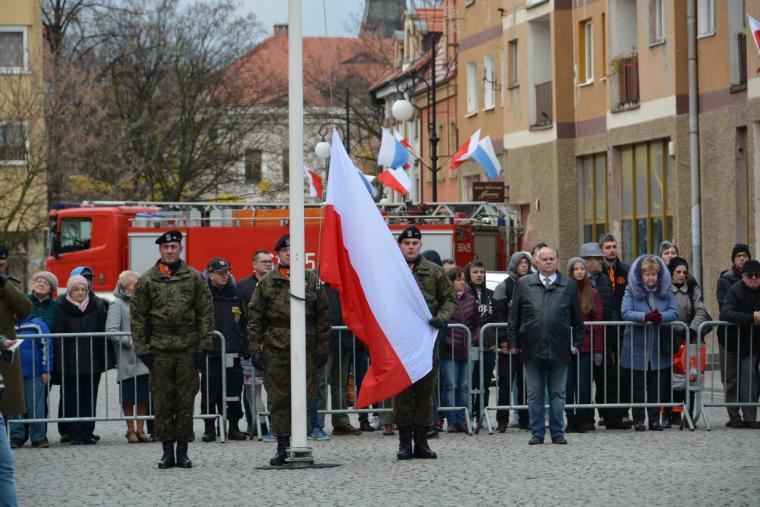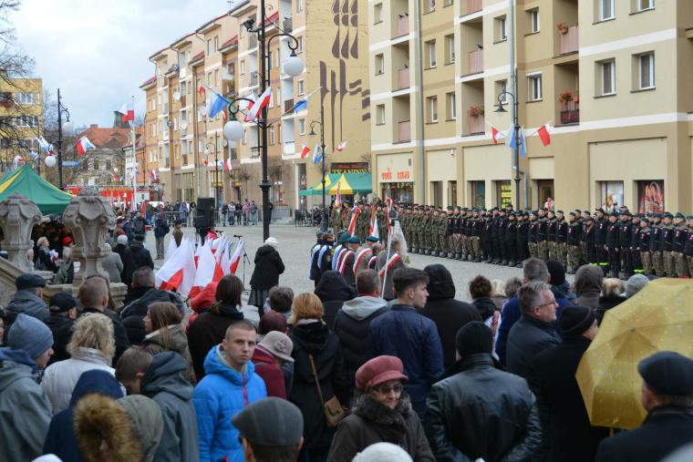 Druga część uroczystości miała miejsce na legnickim Rynku. Na maszt wzniesiono polską flagę i odśpiewano hymn narodowy. Uczniowie pierwszych klas mundurowych VII LO złożyli swoje ślubowanie. Następnie odbyła się prezentacja X Brygady Kawalerii Pancernej im. gen. broni S. Maczka w Świętoszowie, Państwowej Straży Pożarnej, Policji, Straży Granicznej, Żandarmerii Wojskowej. Z koncertami wystąpiła Dziecięco-Młodzieżowa Orkiestra Dęta oraz Legnicka Orkiestra Dęta. Odbył się także „Korowód Niepodległości”, ułożono również „żywą flagę”. Można też było uczestniczyć w widowisku teatru Avatar. Dla uczestników święta przygotowano także warsztaty tworzenia kotylionów, stoiska gastronomiczne oraz wiele innych atrakcji.