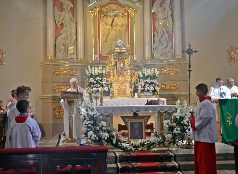 Przed końcowym błogosławieństwem ks. kan. Krzysztof odczytał modlitwę o uproszenie łask za wstawiennictwem Świętego Szczęsnego. Od 2014 roku w kościele farnym znajdują się relikwie Założyciela Zgromadzenia Sióstr Franciszkanek Rodziny Maryi. Po zakończonej Eucharystii wiele osób oddało cześć św. Zygmuntowi Szczęsnemu Felińskiemu obecnemu w naszym kościele w znaku relikwii.