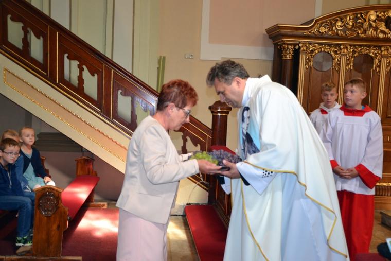 Podczas tej Eucharystii lekcje odczytane zostały przez siostrę Małgorzatę i siostrę Sylwię. Dzieci uczęszczające do świetlicy prowadzonej przez siostry przygotowały modlitwę powszechną. W dialogowanej homilii z dziećmi ks. kan. Krzysztof nawiązując do słów Ewangelii zaakcentował, że każdy z nas jest bardzo cenny w oczach Boga. Bóg każdego woła i szuka. Gdy Bóg nas woła możemy przyjść do kościoła, a gdy zdarzy nam się zrobić coś złego Pan Jezus czeka na nas w sakramencie pokuty. Ksiądz kanonik zachęcił dzieci, by wkleiły do zeszytu 1 grosz, który będzie im przypominał o tym, że są bardzo ważne dla Boga. W procesji z darami przyniesiono: płonącą świecę, kwiaty,winogrona, chleb, wodę i wino, hostię.