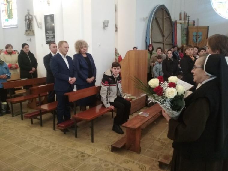 Podczas wizyty Wicemarszałek Senatu w Sopoćkinach, delegacja łącznie z konsulem Marcinem Wojciechowskim uczestniczyła w Eucharystii, podczas której proboszcz parafii ks. Władysław Mieszczański mówił o potrzebie dawania świadectwa miłości drugiemu człowiekowi. Szczególnie uczulił rodziców i dziadków, aby byli świadkami miłości dla kolejnych pokoleń. Po Mszy św., wspólnota parafialna podziękowała senator Marii Koc za pamięć, odwiedzanie i cykliczną pomoc, jaką organizuję dla miejscowych Polaków. Wzruszona Pani Marszałek podziękowała za piękne świadectwo przywiązania do Polski, do ojczystego języka i pielęgnowania polskości w bardzo trudnych warunkach. Niezwykle wymownie brzmią słowa jednej z Polek, która w kościele łamiącym się głosem ze łzami w oczach prosiła: „Nie zostawcie nas samych tutaj. Pamiętajcie o nas”.