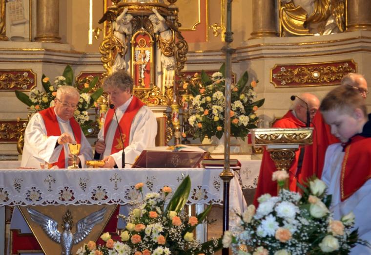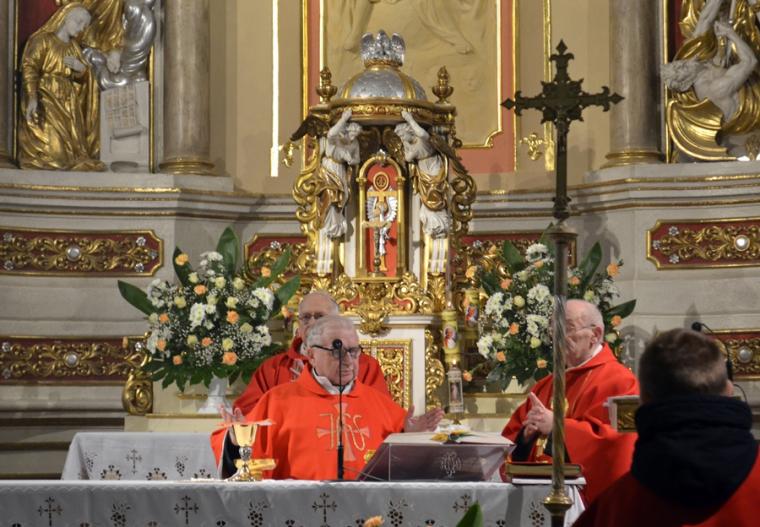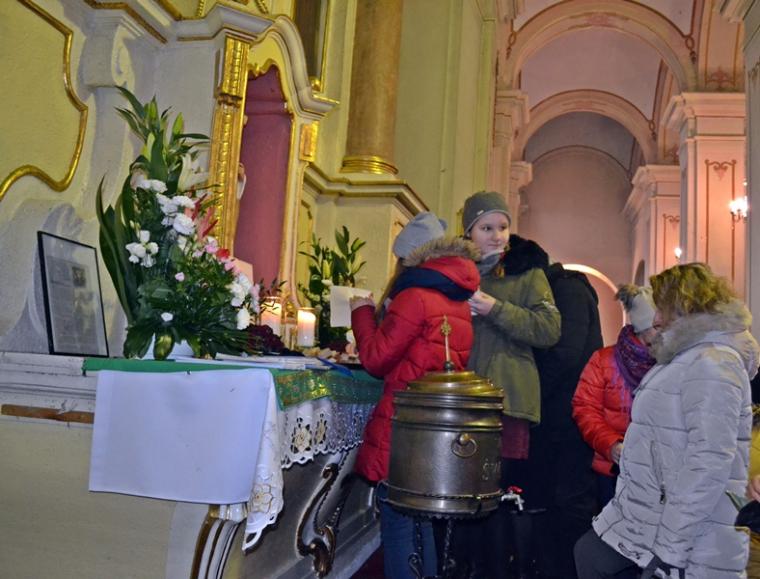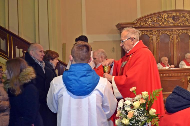 5. lutego w obchodzone jest liturgiczne wspomnienie Świętej Agaty dziewicy i męczennicy. W mikstackiej farze w ołtarzu bocznym znajduje się jej obraz. Wiele osób zapewne słyszało o odbywających się w Mikstacie uroczystościach odpustowych ku czci Świętego Rocha połączonych z obrzędem błogosławieństwa zwierząt. O uroczystościach odpustowych ku czci Świętej Agaty zapewne niewielu, chociaż jej kult jest tu żywy od stuleci. Stało się już tradycją w mikstackiej wspólnocie, że uroczysta suma odpustowa ku jej czci sprawowana jest w niedzielę. W tym roku przeżywaliśmy ją 4. lutego. Tak jak to się już stało tradycją, odpustową sumę, sprawowali Kapłani z Domu Księży Emerytów Jana Pawła II z Ostrowa Wielkopolskiego. Wraz z nimi przy ołtarzu stanął pochodzący z naszej parafii ks. kan. Zbigniew. Dlaczego mówimy o tradycji? Bo w tym roku zasłużeni dla kaliskiej diecezji Kapłani, którzy zakończyli już posługę w swoich parafiach po raz jedenasty przybyli do naszej wspólnoty, by dzielić z nami radość odpustowego czasu i sprawować Eucharystię. Na początku mszy św. ks. kan. Krzysztof Ordziniak przedstawił przybyłych Kapłanów i intencje, w których się modlili. Na ręce ks. prał. Jana Wolniaka, Dyrektora Domu Księży Emerytów im. Jana Pawła II złożył podziękowania za pomoc i posługę, ale także za sprawowane msze święte w intencji naszych zmarłych parafian. Uroczystej koncelebrowanej sumie odpustowej przewodniczył i kazanie wygłosił ks. kan. Marian Dopieralski. Ubogacił niezwykle zebranych w mikstackim wieczerniku wiernych swoim słowem ks. kan. Dopieralski, ale także zmobilizował do refleksji nad swoją wiarą. Rozpoczynając homilie kaznodzieja zwrócił uwagę , że cechą natury ludzkiej jest to, że odczuwa potrzebę istnienia Kogoś, kto ten świat stworzył od Kogo zależy los świata i człowieka. Podkreślił, że nawet człowiek niewierzący ma zalążek wiary. Ks. kan. przywołał słowa nieżyjącego już filozofa Leszka Kołakowskiego: „ Nie będę odpowiadał na pytanie, czy wierzę w Boga, bo myślę, że Pan Bóg już to wie". W dalszej części homilii kaznodzieja przypomniał krótko historię życia i męczeństwa św. Agaty dziewicy i męczennicy, podkreślając, że nawet okrutne tortury nie odwiodły jej od wiary. Kontynuując rozważanie ks. kan. zachęcił zebranych do refleksji nad pytaniami: jak to się dzieje, że człowiek oddaje swoje życie za wiarę, ale także nad tym, jak to możliwe, że człowieka zabija drugiego człowieka. Kaznodzieja zaakcentował, że „Męczeństwo na tej ziemi nie jest przypadkiem. Męczeństwo jest powszechne, bo wtedy kiedy już nie przekonują żadne argumenty pozostaje, pozostaje jeszcze jeden argument- argument męczeństwa”. Historia męczenników się nie skończyła, bo wciąż przelewana jest krew chrześcijan. Jak podkreślił z naciskiem przytaczając dane statystyczne, nie jest przypadkiem, że św. Jan Paweł II nazwał XX wiek, wiekiem męczeństwa. Kaznodzieja zwrócił uwagę, że wielu krajach nie wolno nosić ani stawiać krzyża. Zapewne zachętą do osobistego rachunku sumienia były słowa: „ Wielu z nas nie potrafi stanąć w obronie swoich przekonań, wielu nie potrafi poprzeć tego, który broni swojej wiary, który daje świadectwo o wierze”. W dalszej części homilii ks. Kan. Dopieralski zwrócił uwagę, że wielki wyzwaniem, ale i zadaniem są dla nas męczennicy, patronka św. Agata, ale także współcześni męczennicy. Kaznodzieja przywołał zamordowanych w Peru franciszkanów o. Zbigniewa i o. Michała, a także zamordowaną przed rokiem wolontariuszkę Helenkę Kmieć. Słowa skierowane do wiernych kaznodzieja zakończył modlitwą: „ Święta Agato, pragniemy Cię prosić, o wiarę prostą, szczerą, żywą o wiarę prawdziwą. W świecie, który zapomina o Bogu, które zepchnął Ciebie na najniższy poziom hierarchii wartości, prosimy Cię dla nas o silną wiarę i odwagę jej wyznawania. Amen. Po zakończonej Eucharystii ks. kan. Marian Dopieralski pobłogosławił chleb i sól. Mają one chronić przed pożarami, podróżujących i kierowców przed nieszczęśliwymi wypadkami. Chleb i sól pobłogosławione w uroczystość św. Agaty podane zwierzętom mają chronić je przed chorobami. Kawałek chleba pobłogosławiony w dzień odpustu Świętej Agaty zabierany przez tych, którzy wyjeżdżają na dłużej ma ułatwić rozłąkę. Wielu wiernych zabrało ze sobą do domów pobłogosławiony chleb…