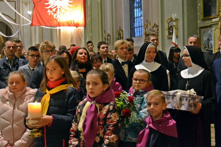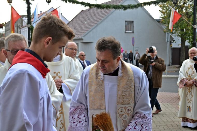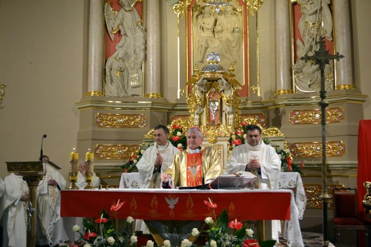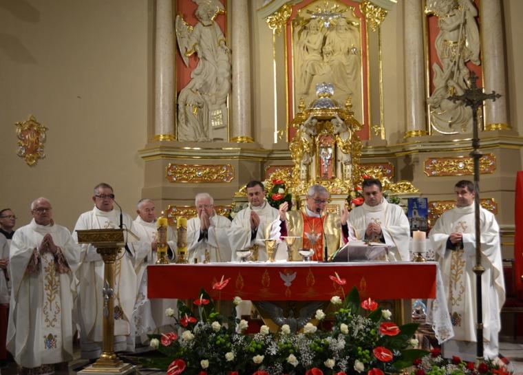 20-go października mikstacka wspólnota parafialna przeżywała jubileusz 100- lecia konsekracji kościoła pw. Świętej Trójcy. Zapewne na zawsze pozostanie w sercach i pamięci uczestników ta piękna uroczystość, której przewodniczył ks. bp Edward Janiak Ordynariusz Diecezji Kaliskiej. Uroczysta Eucharystia rozpoczęła się w tej konsekrowanej przez abpa Edmunda Dalbora dokładnie przed wiekiem świątyni o godz. 17:00. Bardzo piękną oprawę miał przyjazd ks. Bpa Ordynariusza do Mikstatu. Był on odtworzeniem wydarzenia sprzed stu lat. Na przybywającego Dostojnego Gościa przed torami kolejowymi oczekiwali motocykliści, którzy eskortowali jego samochód do granic Mikstatu. Na granicy Mikstat ks. biskup przesiadł się w karocę zaprzężoną w cztery konie, którą zajechał przed kościół.  Taką karocą przybył przed stu laty na uroczystość konsekracji kościoła abp Edmund Dalbor. Po rozpoczęciu Eucharystii słowa powitania skierował do księdza biskupa gospodarz miejsca ks. proboszcz Krzysztof  Ordziniak. Przypomniał także okoliczności budowy świątyni, przywołał opis konsekracji sprzed wieku, a także wspomniał kapłanów w niej  posługujących. Ksiądz kanonik przywitał zaproszonych gości, przedstawicieli władz samorządowych oraz licznie zgromadzoną rzeszę parafian. W  ostatnich trzech latach w świątyni trwały prace renowacyjne w prezbiterium. Zakończyły się kilka dni przed jubileuszowymi uroczystościami. Ksiądz proboszcz zwrócił się do ks. biskupa z prośbą o poświęcenie odnowionego prezbiterium, tablicy upamiętniającej obchody 100-lecia konsekracji kościoła oraz 25-rocznicy erygowania Diecezji Kaliskiej, a także krzyża misyjnego znajdującego się przy kościele. Przebywając w Mikstacie abp Edmund Dalbor udzielił sakramentu bierzmowania 650. osobom. Podczas sobotniej uroczystości przyjęło go z rąk ks. bpa Edwarda Janiak pięćdziesięciu młodych parafian. O jego udzielenie poprosili ks. biskupa przedstawicie rodziców kandydatów do bierzmowania. Po specjalnej modlitwie ks. Biskup poświęcił pięknie odnowione prezbiterium, tablice pamiątkowe i nowy, wykonany po sześćdziesięciu latach krzyż misyjny. Na początku homilii ks. biskup zaznaczył, że jest w mikstackiej parafii już po raz czwarty, chociaż jak przyznał są parafie, których nie był ani razu. Kontynuując powiedział: „Zawsze Mikstat kojarzył mi się z tradycją, że tutaj jest takie szczególne miejsce gdzie ludzie mają poczucie więzi, z miastem, z tym miejscem”. Powołując się na dokumenty historyczne wyjaśnił, dlaczego Mikstat nazywany jest czasami „małym Paryżem”. Podkreślił także, że już w dawnych dokumentach zapisano, że mieszkańcy troszczą się o swój kościół. Nawiązując do trwających w świątyni prac renowacyjnych celebrans powiedział: „Chciałbym bardzo serdecznie podziękować na ręce księdza proboszcza za troskę o świątynię. Tutaj jest wiele elementów, które się razem spotkały i szanse tego projektu unijnego i urzędu marszałkowskiego i ministra i właściwie wasz udział jest bardzo istotny. Nieraz nawet jak się coś w prezencie dostaje  nie ceni się, ale jak jest w tym udział tzw. ten grosz wdowi to  jest bardzo cenne”. Kontynuują homilię ks. biskup podziękował konserwatorom, mecenasom sztuki za troskę o to, by świątynia stawała się coraz piękniejsza. Podkreślił,  że wygląd świątyni świadczy o parafianach, o ich wierze, wdzięczności wobec Pana Boga i ofiarności, ale dodał: „Pan Bóg chce od nas czegoś więcej,  On chce mieszkać w naszych sercach. To my mamy być tym tabernakulum”.