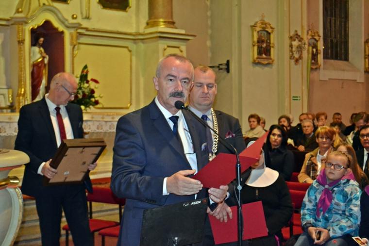 Po zakończonej Eucharystii odbyło się wręczenie  tytułu: Zasłużony dla Miasta i Gminy Mikstat- dr. Rafałowi Dutkiewiczowi. Laudacje wygłosił Burmistrz Miasta i Gminy pan Henryk Zieliński, zaś treść uchwały o nadaniu tytułu Zasłużonego dla Miasta i Gminy , przewodniczący Rady Miasta i Gminy Łukasz Dybul. Po wręczeniu dyplomu  i repliki aktu urodzenia głos zabrał uhonorowany, dodajmy pochodzący z Mikstatu dr Rafał Dutkiewicz. Uroczystość w kościele zakończyła się odśpiewaniem Roty. Potem był czas dalszego radosnego spotkania przy kawie, słodkościach i  dźwiękach orkiestry parafialnej.