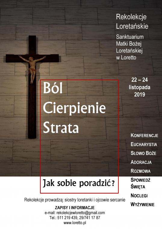 Rekolekcje Ból, cierpienie, strata. Jak sobie poradzić? 22-24 listopad 2019