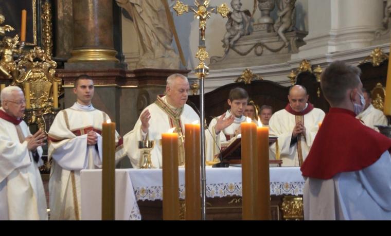 Uroczystość ogłoszenia procesu beatyfikacji Henryka II Pobożnego rozpoczęła Msza święta w bazylice pw. Podwyższenia Krzyża św. w Legnickim Polu, której przewodniczył Biskup Legnicki Zbigniew Kiernikowski.