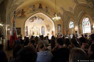 W czwartek, 9 września młodzież polonijna, biorąca udział w Kongresie Eucharystycznym, zgromadziła się wraz z bp Wiesławem Lechowiczem, swoimi opiekunami oraz miejscową Polonia w Polskiej Parafii Personalnej w Budapeszcie. Spotkanie rozpoczęto adoracją Najświętszego Sakramentu. W modlitwie wziął udział abp Stanisław Gądecki, który skierował do zebranych słowa pozdrowień. Następnie był czas na wspólną agapę z zabawą, śpiewami i węgierskim gulaszem.