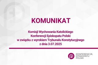 Komisja Wychowania Katolickiego wyraża nadzieję, że po wyroku Trybunału Konstytucyjnego, którego orzeczenia – w myśl Konstytucji RP – są ostateczne, zostanie przywrócony ład prawny, tzn. uchylone przez Trybunał regulacje zostaną cofnięte i nie będą przestrzegane przez podmioty odpowiedzialne za edukację w Polsce – czytamy w komunikacie Komisji Wychowania Katolickiego Konferencji Episkopatu Polski w związku z wyrokiem Trybunału Konstytucyjnego z dnia 3 lipca 2025 roku.