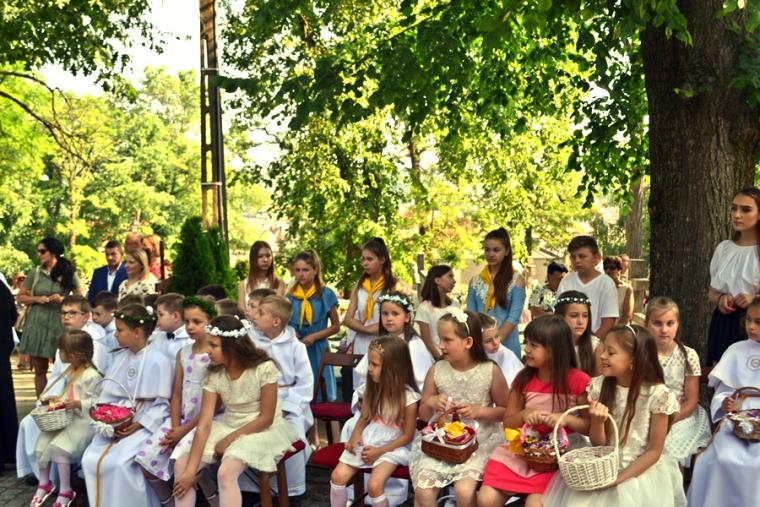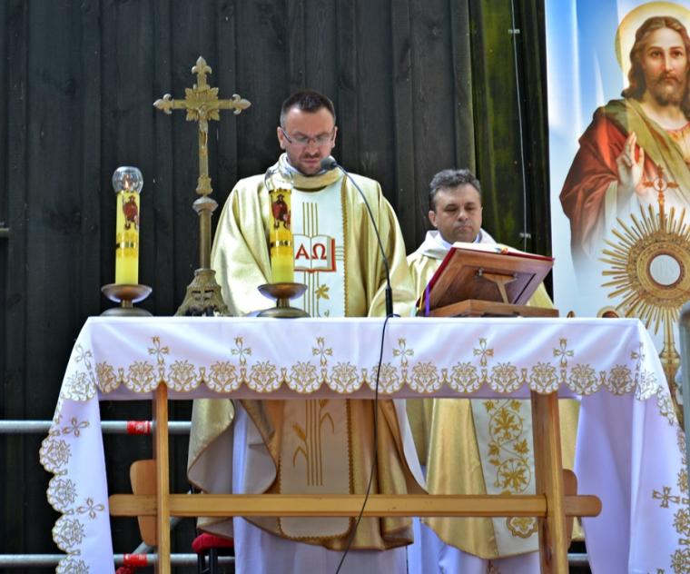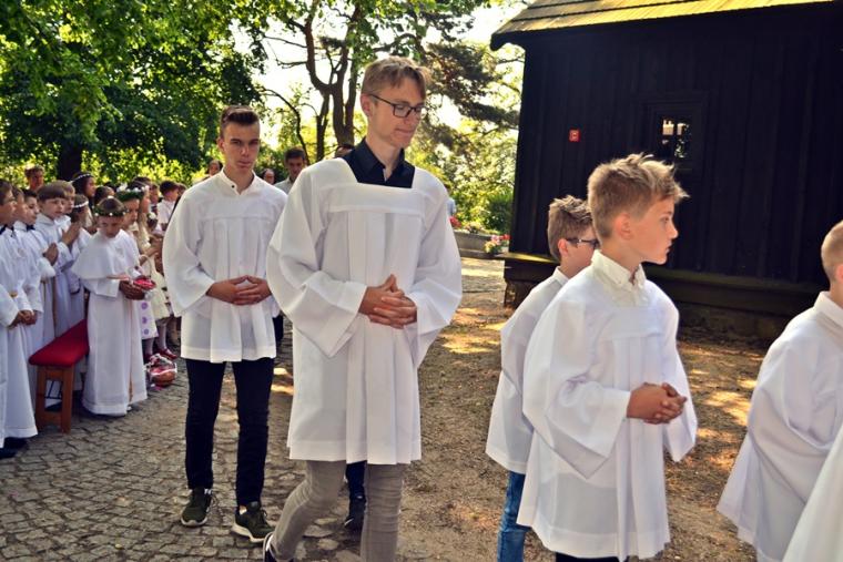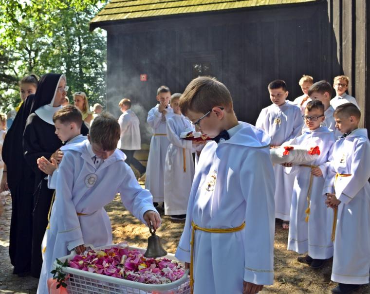 31. maja obchodziliśmy Uroczystość Najświętszego Ciała i Krwi Pańskiej. Jest to dzień wyjątkowy w życiu Kościoła, ale także w życiu każdej wspólnoty parafialnej. . W tym szczególnym dniu Jezus ukryty pod postacią chleba w Najświętszym Sakramencie opuszcza kościół, by przemierzając ulice miast, miasteczek, wiosek zobaczyć, jak się powodzi Jego dzieciom. W mikstackiej wspólnocie parafialnej uroczysta suma, po której ulicami miasta wyruszyła procesja do czterech ołtarzy została odprawiona przy Diecezjalnym Sanktuarium Świętego Rocha o godz. 9:00. Przewodniczył jej ks. kan. Krzysztof Ordziniak, kustosz sanktuarium, współcelebransem był ks. wikariusz Krzysztof Lipiński. Ksiądz proboszcz polecał w Eucharystii wszystkich parafian, tych którzy przygotowywali ołtarze oraz tych, którzy będą obsługiwali procesje. Homilię wygłosił ks. kan. Krzysztof Ordziniak. Rozpoczynając podkreślił, że dwa razy w ciągu roku Bóg opuszcza mury kościoła, by udać się do swoich dzieci. Czyni to w uroczystość Wszystkich Świętych, kiedy to idzie na cmentarze, by opłakiwać wraz z nami naszych bliskich, przyjaciół, znajomych. To drugie wyjście ma charakter radosny i ma miejsce właśnie w uroczystość Najświętszego Ciała i Krwi Pańskiej. W tym dniu- jak podkreślił celebrans przygotowujemy ołtarze, dekorujemy domy, aby przywitać Pana, nawiedzającego zagrody swoich dzieci. Kontynuując ks. kan. przywołał słowa pieśni „ Zróbcie Mu miejsce, Pan idzie z nieba…” zaakcentował, że wskazuje ona z jednej strony cel wyjścia Jezusa ze świątyni, ale także sposób w jaki powinniśmy czcić przyjście Pana. Kaznodzieja wskazał, że pieśń ta wskazuje dary jakie przynosi nam Pan. Zaznaczył, że udział w procesji jest wyznaniem naszej wiary. Przytoczył wydarzenie z czasów okupacji, kiedy to grupa więźniów udała się z obozu pracy do miasteczka eskortowana przez esesmanów. Po drodze spotkali kapłana jadącego z Wiatykiem do chorego. Wszyscy uklękli. Ów kapłan, jak wskazał celebrans, będąc pod wrażeniem takiej relacji więźniów zapisał w kronice mi. in. takie słowa: „Naród, który ma taką wiarę, nie może zginąć”. Ks. kan. Krzysztof zachęcał zebranych, by zapamiętali te słowa, ale także by czcili Chrystusa nie tylko pokłonem, ale także śpiewem. Podkreślił, że procesja nie jest pochodem niemych, a polskie pieśni eucharystyczne są niezwykle piękne. Przywołał przykład barwnych procesji Bożego Ciała odbywających się w Łowiczu, które zostały wpisane na Krajową Listę Niematerialnego Dziedzictwa Kulturowego, na której jak przypomniał ks. kustosz znajdują się także nasze uroczystości odpustowe ku czci św. Rocha połączone z obrzędem błogosławieństwa zwierząt.