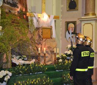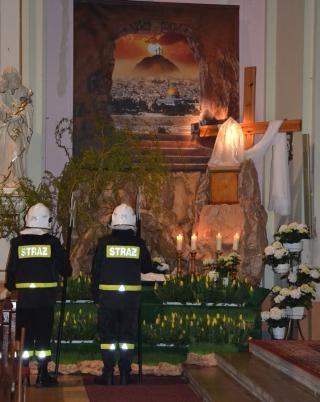 Po zakończonej liturgii Najświętszy Sakrament został przeniesiony do kaplicy Grobu Pańskiego, gdzie będzie trwała całonocna adoracja. Zgodnie z wieloletnią tradycją wartę przy Grobie Pańskim zaciągnęli druhowie OSP  z Komorowa. Ich powołaniem jest służba Bogu i ludziom. W tę noc  będą czuwali przy Jezusie złożonym w Grobie Pańskim. Zapewne wiele osób nawiedzi w tę noc kościół, by zatrzymać się na chwilę modlitwy  przy Grobie Pańskim oraz uczcić krzyż.
