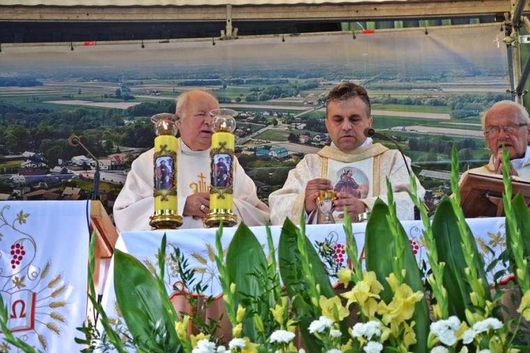 Homilię wygłosił o. Jerzy Brusiło, krajowy duszpasterz lekarzy i służb weterynaryjnych. Zaznaczył, że chociaż  św. Roch ma wiele przymiotów związanych ze zwierzętami, podróżującymi, to w obecnych czasach w kulcie dominuje jako patron od chorób zaraźliwych. Pytał, dlaczego zwracamy się właśnie do niego i wyjaśnił, że Roch żył w czasach epidemii dżumy, pochylał się nad zarażonymi, sam się zaraził, doświadczył epidemii i został cudownie uzdrowiony. Jest więc tym, który, wie, czym jest niebezpieczeństwo choroby. Kaznodzieja zaakcentował, że Roch jest tym, który przeszedł przez to, czego my doświadczamy, dlatego nas rozumie. Zauważył, że nie tylko w czasie odpustu przychodzimy do św. Rocha, ale i w innych trudnych chwilach. Następnie O. Jerzy podzielił się swoim świadectwem z czasu zakażenia. Zaznaczył, że w czasie choroby zwracał się  codziennie do św. Rocha. Modlitwa była dla niego źródłem pokoju i umocnienia. Zachęcał, byśmy modlili się do św. Rocha nie tylko w czasie choroby, bo jest on tym, który pomaga przejść przez różne trudne doświadczenia. Czując wsparcie św. Rocha, powinniśmy zapytać, co dla niego było źródłem siły do pokonania choroby, pomocy zarażonym, umierającym. Podkreślił, że z pewnością były to takie jego cechy jak hart ducha, miłość bliźniego, wiara. Najważniejszym jednak źródłem siły Rocha była Eucharystia. Na pielgrzymim szlaku zatrzymywał się w miejscach kultu, uczestniczył w Eucharystii, przyjmował Komunię  św. Eucharystia była dla niego czymś niezwykle ważnym – podkreślił kaznodzieja. W dalszej części o. Jerzy zwrócił uwagę na to, że podczas obecnej epidemii była pewna trudność udziału w Eucharystii. Zaznaczył jednak, że należy dołożyć wszelkich starań, by w Eucharystii uczestniczyć. Zwrócił uwagę, że pod koniec 2019 roku rozpoczął się cykl duszpasterski pod hasłem „Eucharystia daje życie”, które realizowane jest przez duszpasterzy. Prawie natychmiast nastąpiły ograniczenia. Ojciec Jerzy podkreślił, że mimo wszystko należy korzystać z sakramentów, chodzić  do kościoła, trzymać się Eucharystii. Zaznaczył, że przykład św. Rocha pokazuje, że to pomaga, dodaje sił, jest lekarstwem na chorobę, ale i na lęki, niepokoje związane z epidemią. Ponadto nasz patron wskazuje nam, byśmy we Mszy św., Komunii św., adoracji, procesjach szukali siły do pokonywania trudności. Kończąc o. Jerzy powiedział: „ Błogosławieni, którzy się smucą, albowiem oni będą pocieszeni. Będą pocieszeni i umocnieni przez Komunię św., przez Eucharystię. To wskazanie św. Rocha niech nam towarzyszy, bo Eucharystia daje życie”.