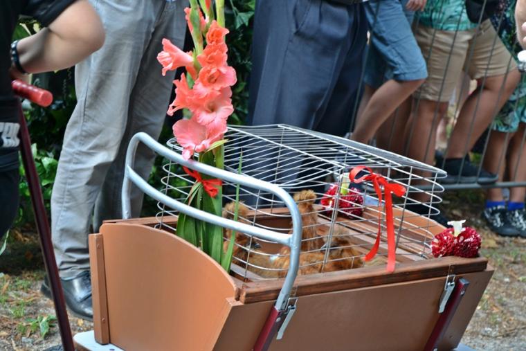 Niezwykła była ta „procesja”  zwierząt i ich właścicieli przed brama prowadzącą do  Diecezjalnego Sanktuarium Świętego Rocha. Były konie, kucyki, krowy, cielątka wiezione na przyczepie, świnki morskie, chomiki, małe i duże króliki, szynszyle, gołębie, gęsi, malutkie kurczaczki. Były koty, różnych ras i wielkości. Na specjalnych przyczepach przywieziono cielątka.  Klatki, w których niesione bądź wiezione były zwierzątka były pięknie przyozdobione. Było sporo psów różnych ras i wielkości  Jak wiemy, pies był wiernym towarzyszem Rocha na pielgrzymim szlaku, a w pewnym okresie także jego żywicielem. Jeszcze na początku lat 70-tych trudno je było dostrzec w procesji przed bramą prowadzącą do Sanktuarium. Były patyczaki, wąż i alpaki. Obrzęd błogosławieństwa zwierząt zakończyło wypuszczenie  gołębi, które są symbolem pokoju, ale także Ducha Świętego. Ksiądz biskup życzył wszystkim radosnego świętowania.